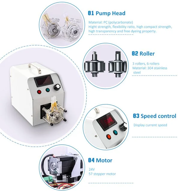 2.SR400-SN15 перистальтический насос подходит для жидкостной вязкости, такой как вода или слабая вязкость жидкости.