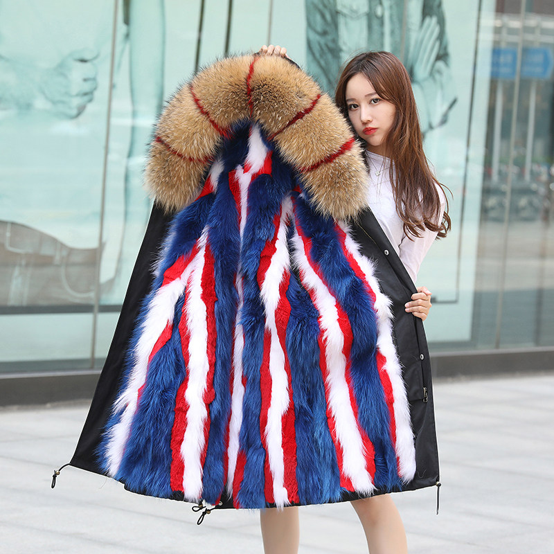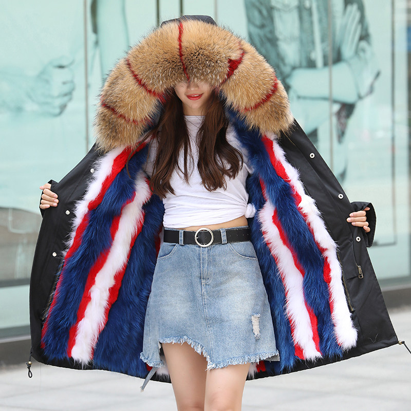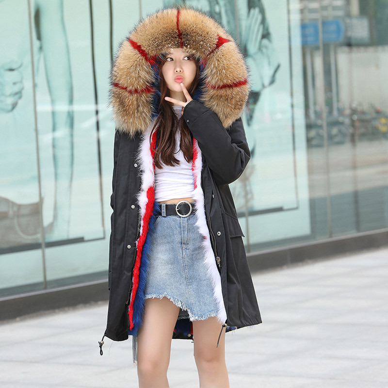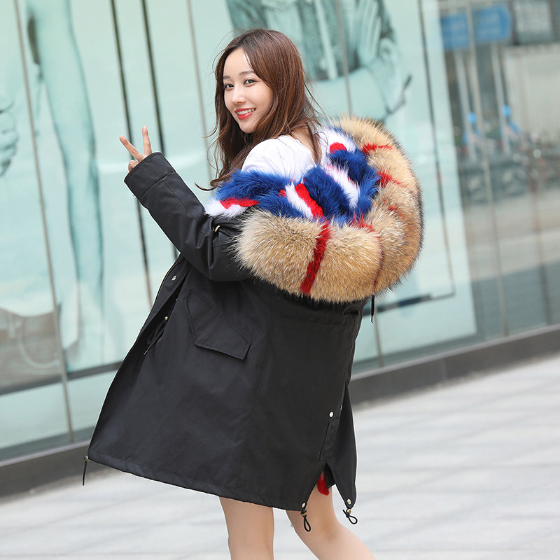 Женская куртка с капюшоном свободная длинная меховым воротником в Корейском