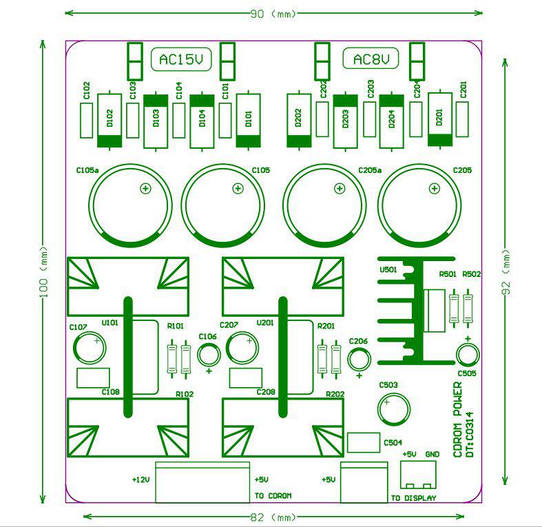 Эта плата используется в качестве платы питания CD-диска при вращении. Может быть оснащен нашим контроллером привода. Это идеальный источник питания. Аналоговые энтузиасты используются для линейного источника питания. По сравнению с импульсным источником питания, он имеет меньше помех и может регулировать звук во многих местах, таких как трансформатор, выпрямительный мост, конденсатор фильтра, отделочный конденсатор и т. д. На плате три группы независимого источника питания. LT1084 (5A) используется для обеспечения высокого тока 5 В и 12 В (фактический светильник) для оптического привода. Привод составляет всего около 2 А или около того, и LM317 используется для питания панели управления до + 5 В.Вход может быть запущен с трансформаторами 15V3A и 9V3A (для обеспечения нормального общего использования, по крайней мере, выберите трансформаторы 15V2A, 9V2A.Пожалуйста, перейдите на заднюю часть изображения, если вам нужен размер платы.Elna 2200 мкФ 4 используется для основного электролиза.Эта ссылка доступна на приведенной ниже физической карте с незначительные изменения без уведомления.
