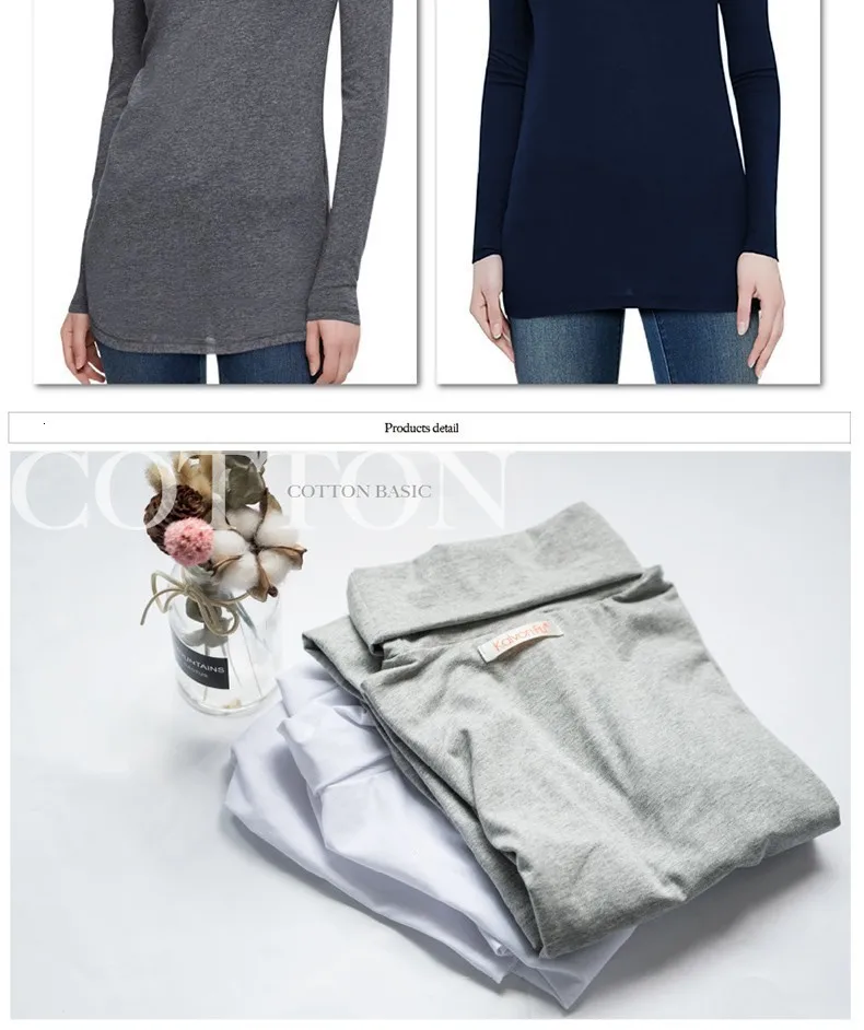 Модные женские хлопковые футболки с длинным рукавом Женская водолазка