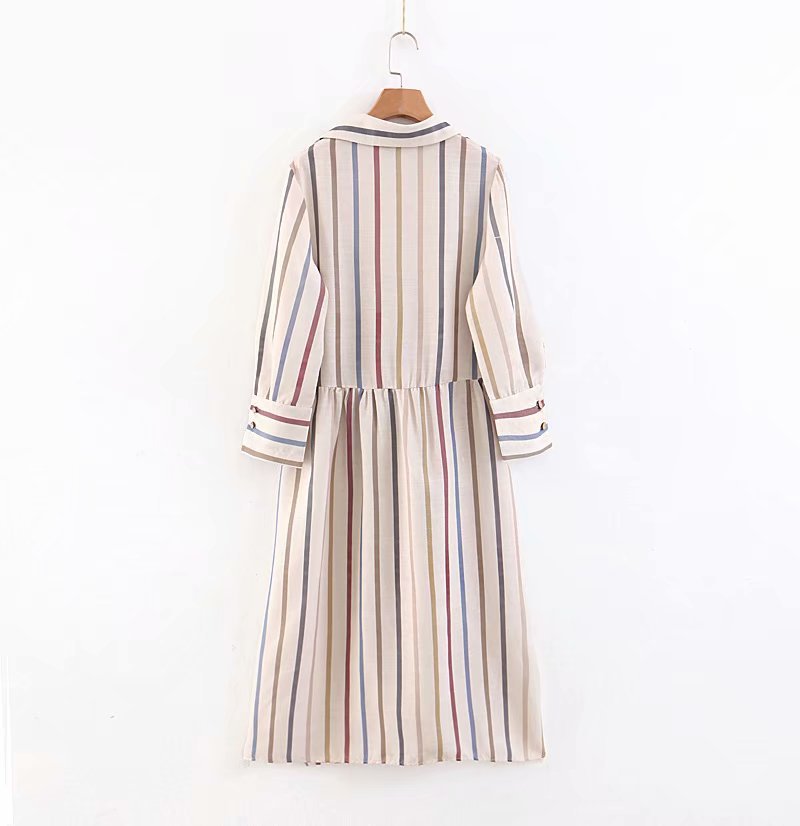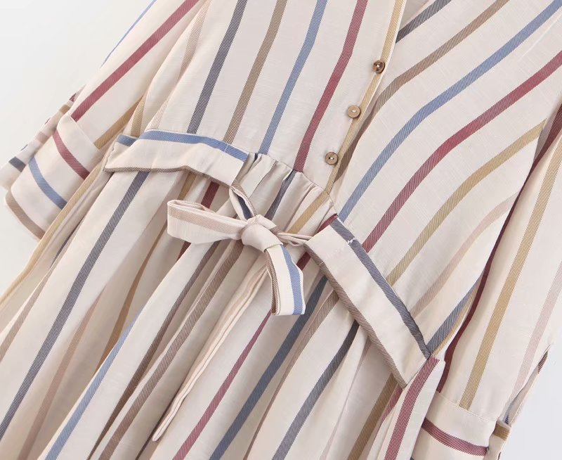 Moirlicer женские миди в полоску платье-футболка галстук-бабочка пояса кнопки Длинные рукава Сплит Повседневная до середины икры Платья vestidos mujer A11078