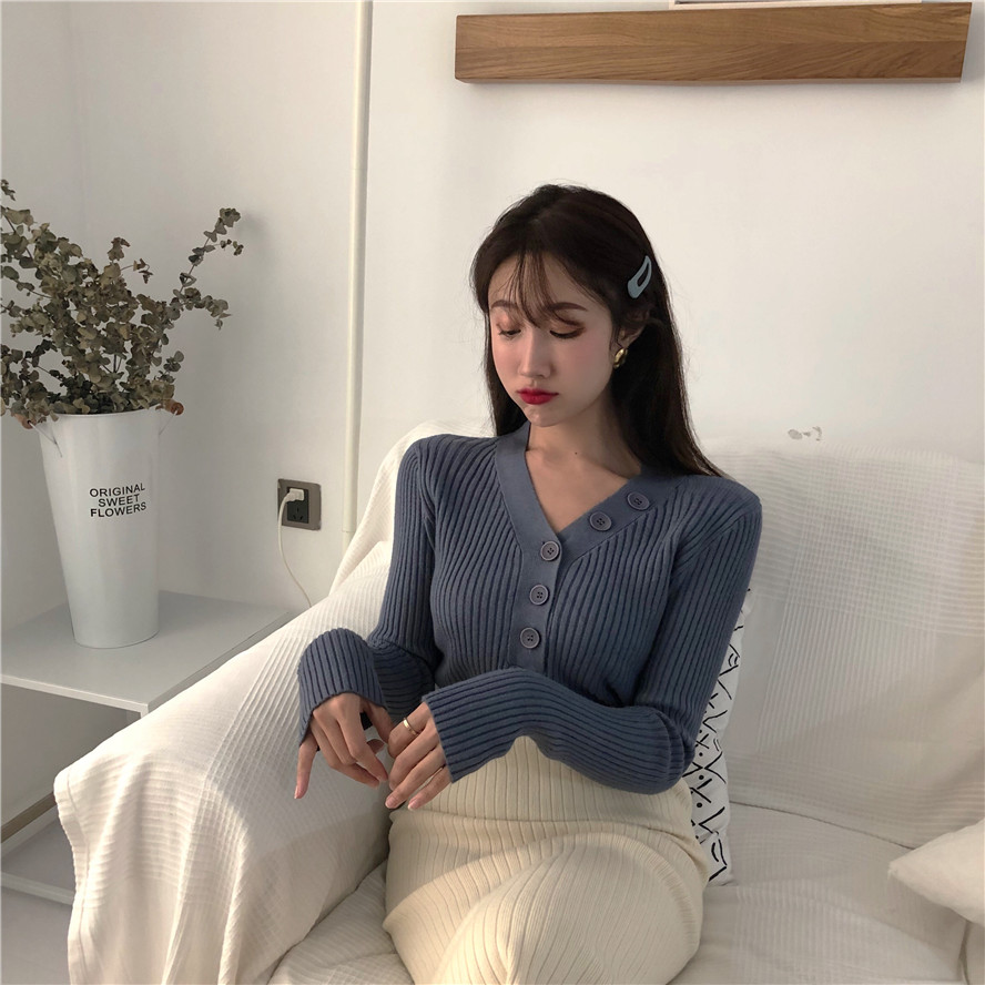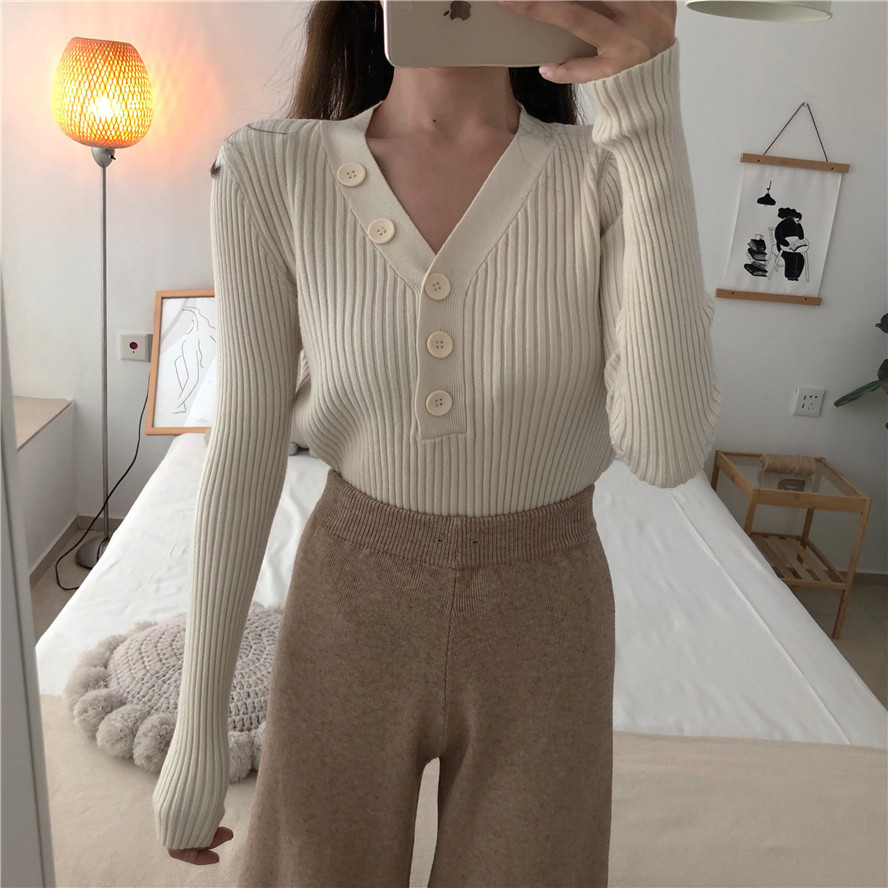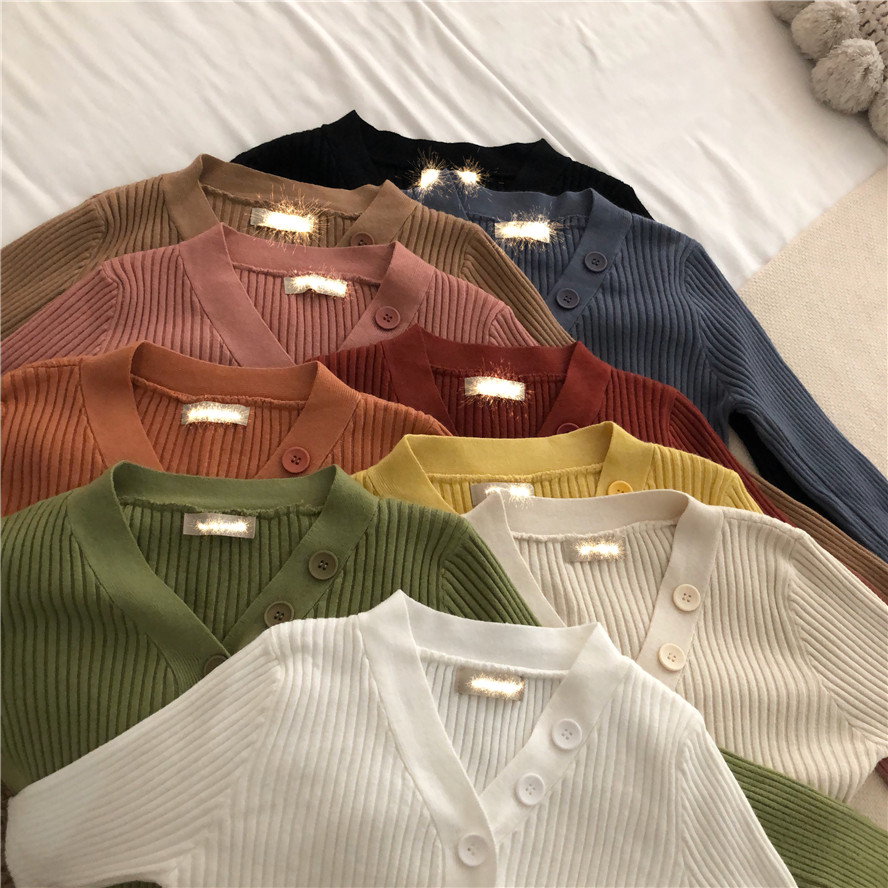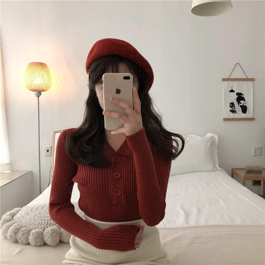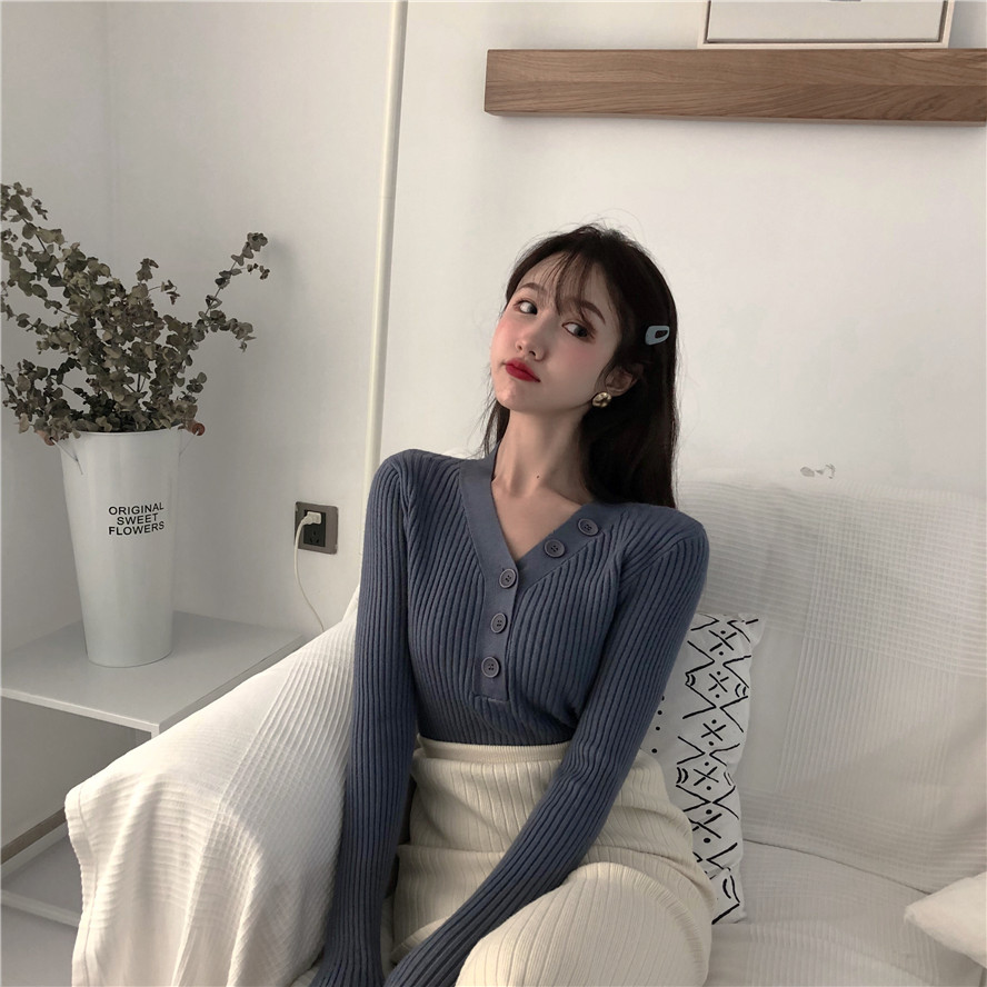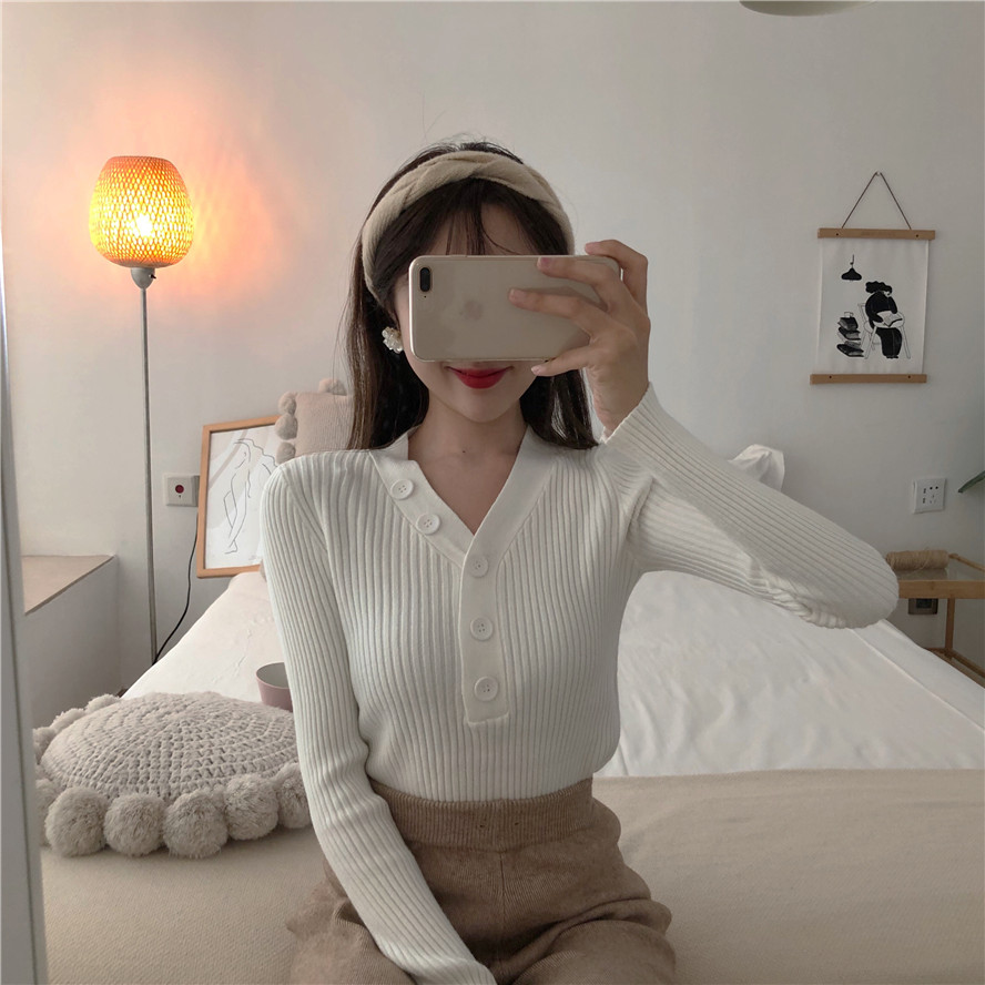 10 цвета осень 2018 г. и зима корейский шик стиль сплошной цвет v образным вырезом свитер тонкий вязаный Топы корректирующие женские