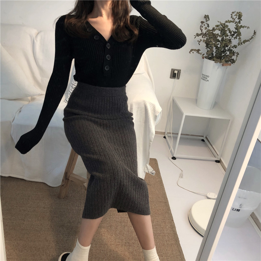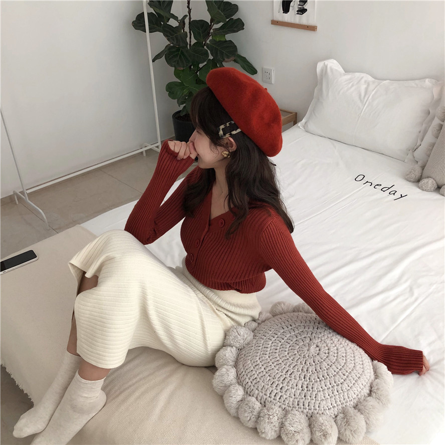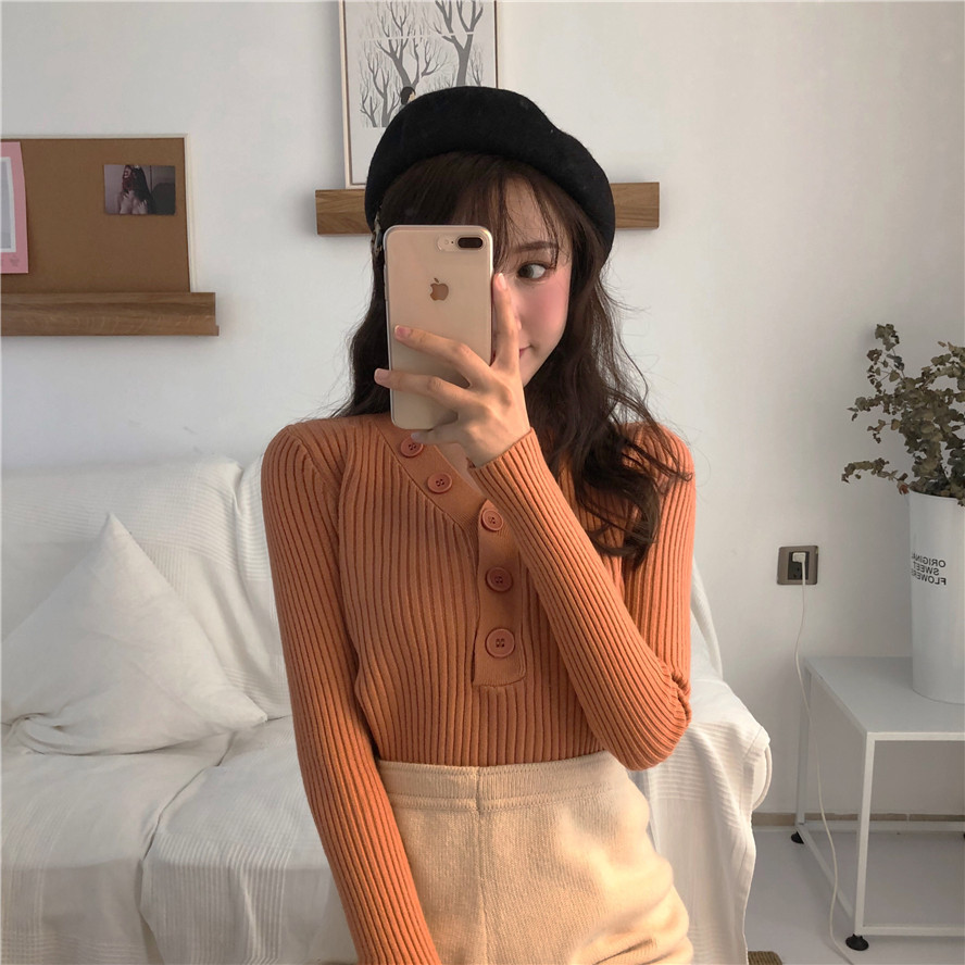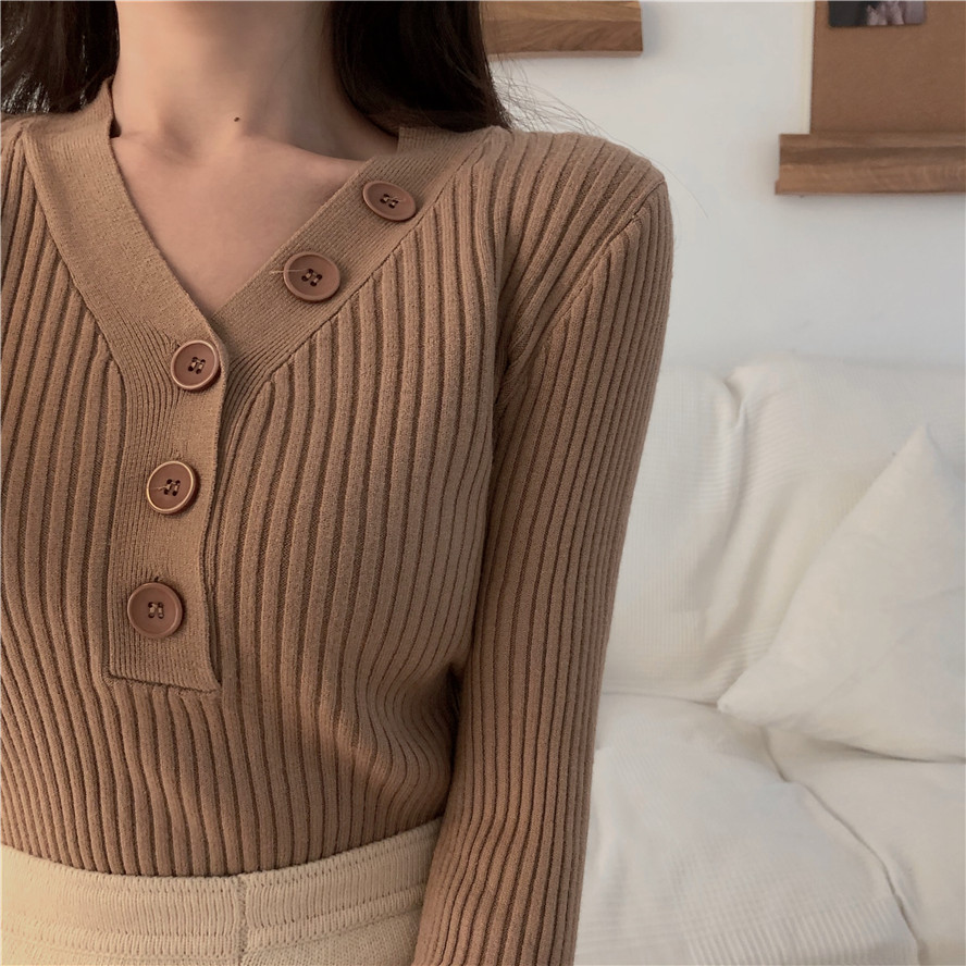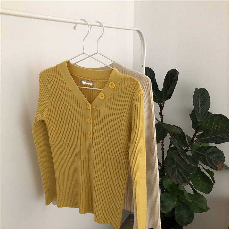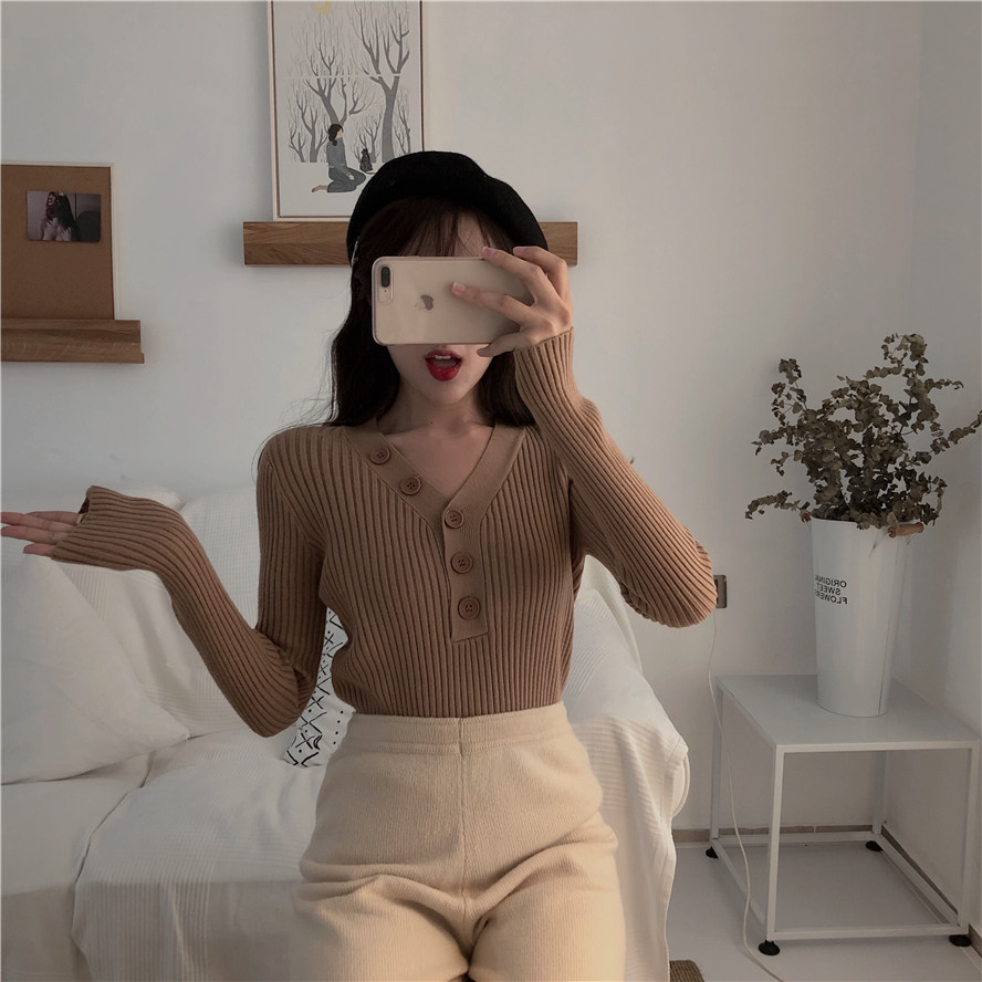 10 цвета осень 2018 г. и зима корейский шик стиль сплошной цвет v образным вырезом свитер тонкий вязаный Топы корректирующие женские