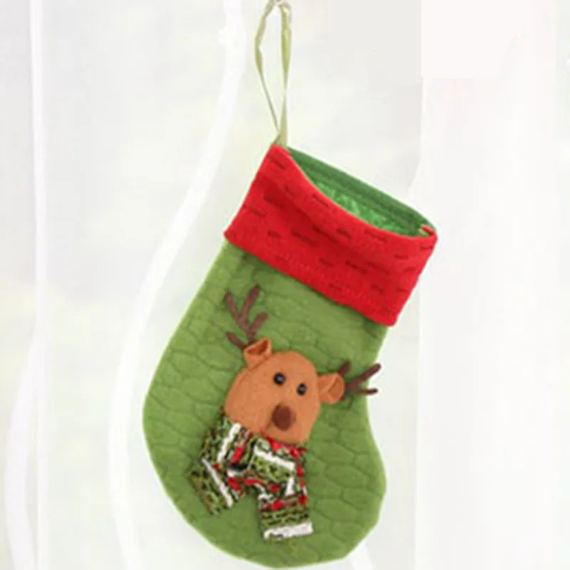 10 шт./лот, красный, зеленый, полиэстер, Санта Клаус, снеговик, лось, рождественские носки, чулки, украшения, конфеты, подарочные сумки для дома