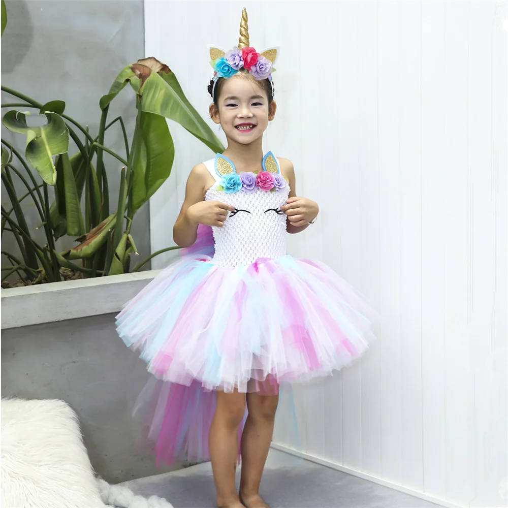 Пастельное платье-пачка с юбкой-пачкой в виде единорога фатиновое платье с цветами для дня рождения для девочек костюмы на Хэллоуин для детей, От 1 до 14 лет для девочек