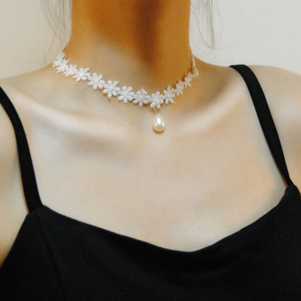 Белое Кружевное колье-чокер, женское чокер с татуировкой, Винтажное колье, женские массивные Подвесные Ожерелья для шеи, Mujer