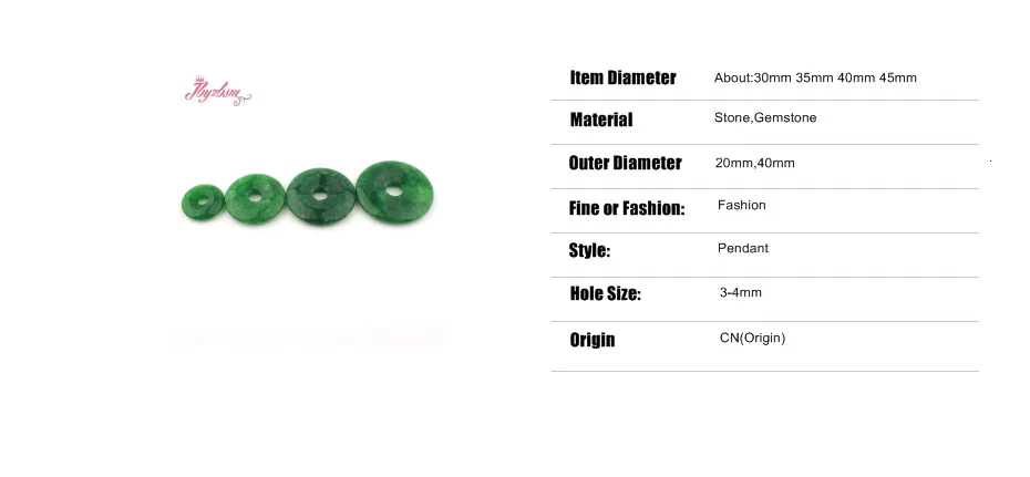 35 40 45 мм Кольцо Пончик круглый гладкий зеленый Jades кулон камень Бусины 1 шт., для DIY ожерелье Pandant Изготовление ювелирных изделий, бесплатная доставка