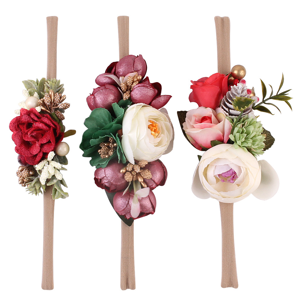 3PCS Floral Baby Headband Newborn Photograph Prop Baby Girl Headbands Elastic Infant Head Band Hair Accessories for Party