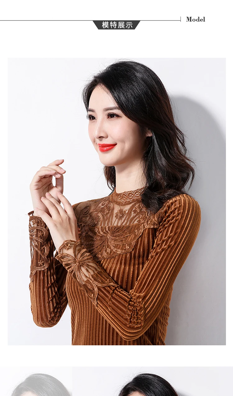 Женская кружевная блузка с длинным рукавом M-3XL, весна 2019, кружевная блузка большого размера плюс