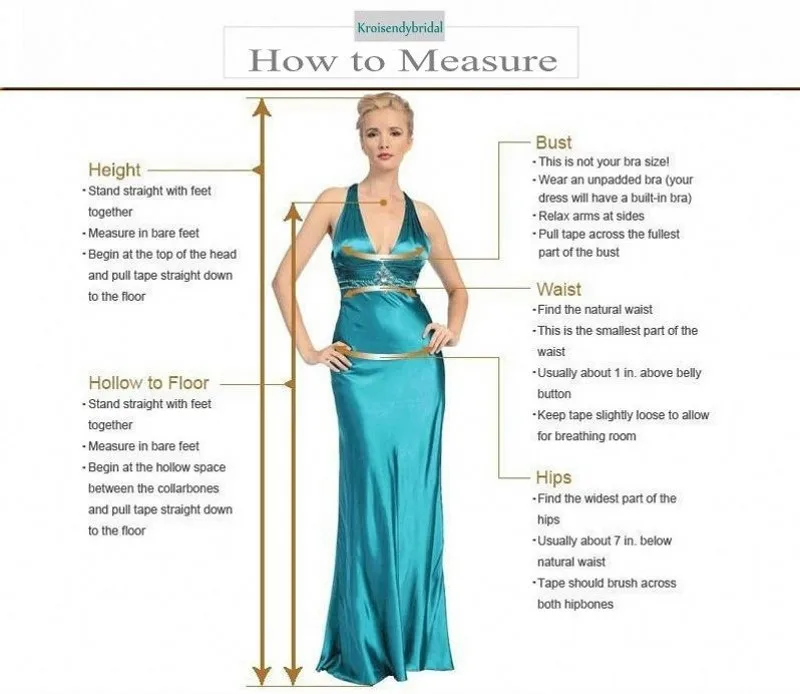 Вы можете выбрать любой размер, чтобы сделать заказ и оставить нам сообщение о ваших собственных измерениях, так как это будет нормально! 1) бюст _ 2) талия _ 3) бедра _ 4) полые в пол без обуви _ 5) естественная высота без обуви _ 6) Примерная высота каблука обуви, которая может использоваться для этого платья _ Внимание: для нормального размера, мы предлагаем бесплатный заказ, но если размер слишком большой, превосходит 18 W, это будет нужно 20 $ ~ 35 $ дополнительную плату!