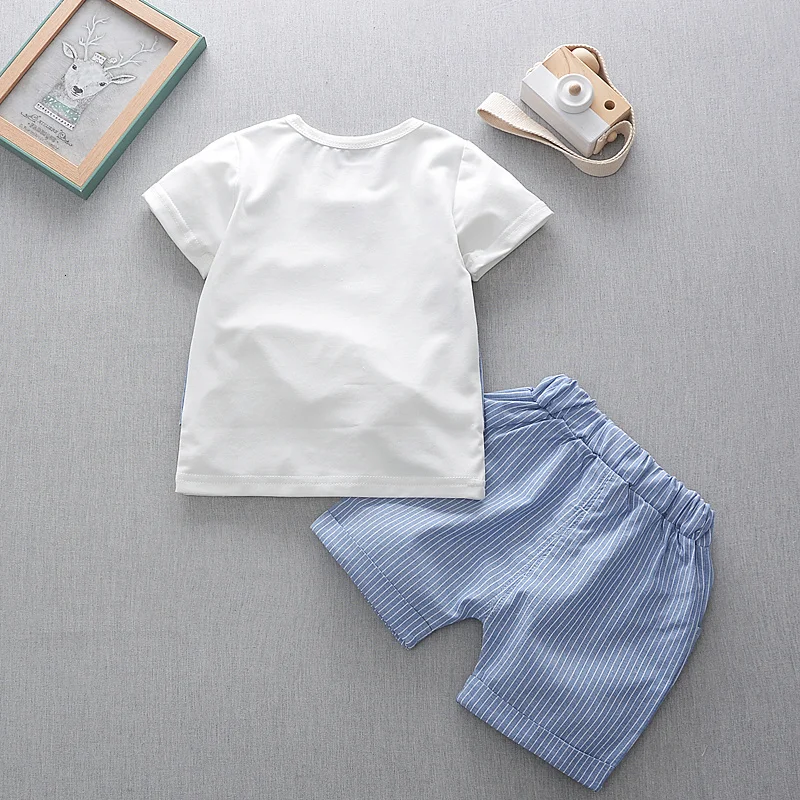 New Summer Children Gentleman Clothes Baby Boys Cotton Tie T Shirt Shorts 2Pcs/Set Kid Infant Clothing Toddler Fashion Tracksuit For 0-4 Years