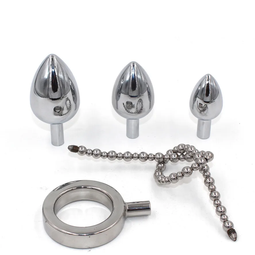 Cock Ring Anal Plug Sex Toys Metal Butt Plug Male Prostate StimulatingPenisStrap On Anal Plug 3 Plugs Chastity Drop shipping