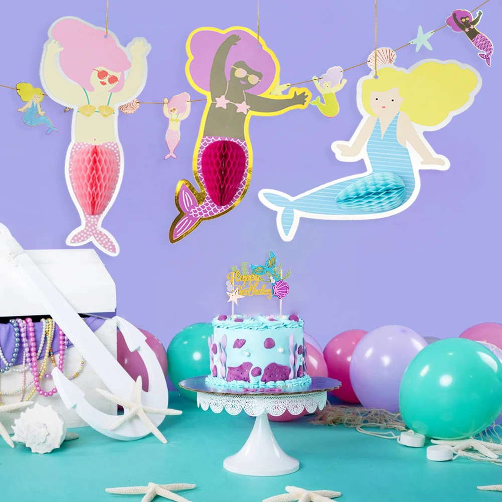 Принадлежности для вечеринки в честь Дня Рождения Русалочки, баннер, фонарь, сотовая бумага, веер, маленькая Русалочка под морем, детское украшение для дня рождения