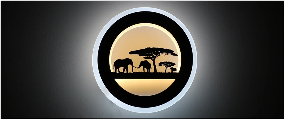Светодиодный iary 14W животных светодиодный круглый настенный светильник 110-240V современный черный Слон Живопись Настенные светильники для Гостиная хрустальные украшения потолка