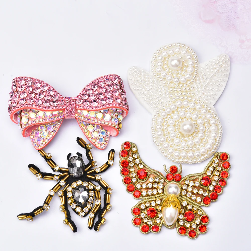 Mixed style shoe flower shoe stickers - rhinestone pearl patch applique decorations Hot glue bottom cloth stickers clothing dress wedding DIY accessories
