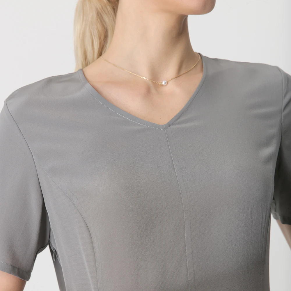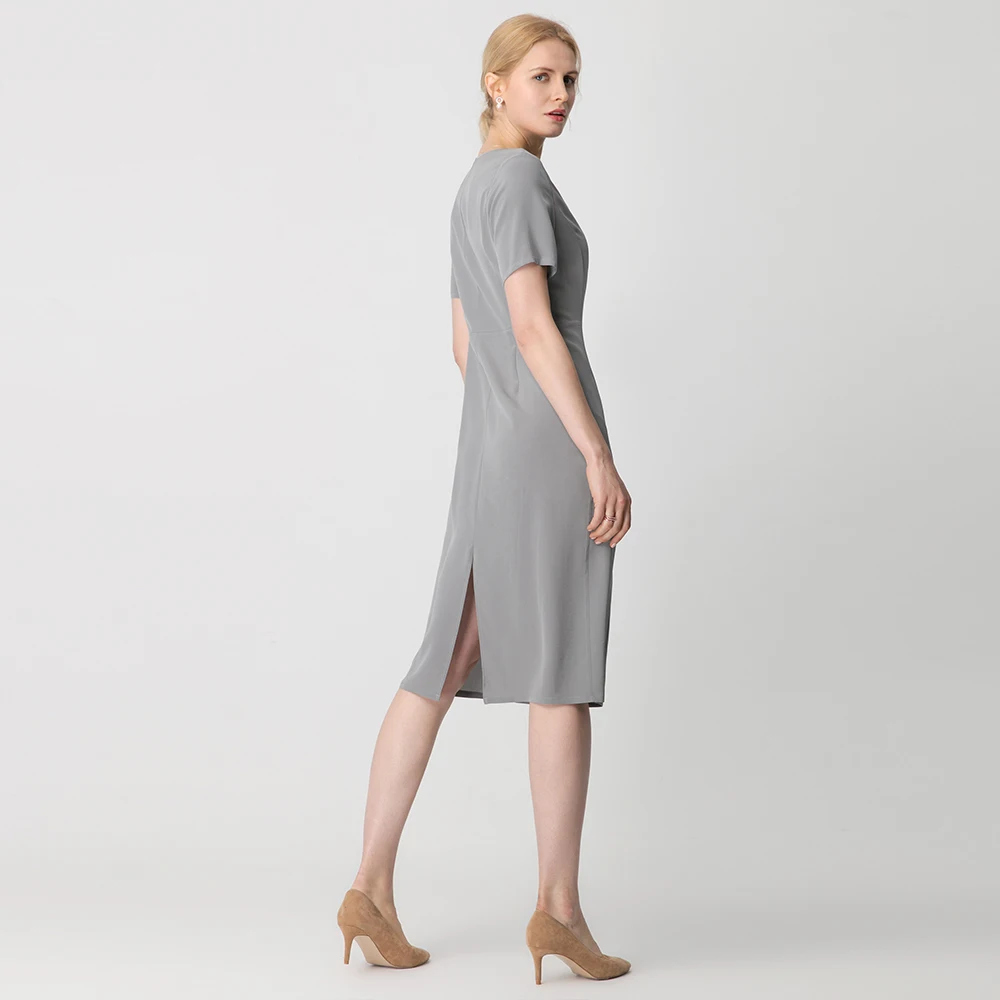 Любовь, внимание из светильник шелковый креп ткань с высокой воздухопроницаемостью, это платье создает Подчеркивающая фигуру форма, который падает красиво с v-образным вырезом до колен. Скрытая молния справа. Разрез на спине удлиняет ваши ноги, придавая им очарование. Модель 5'9 ''/178 см, размер S. Обхват груди-33 "/84 см; Обхват талии-24,4"/62 см; Обхват бедер-35,8 "/91 см