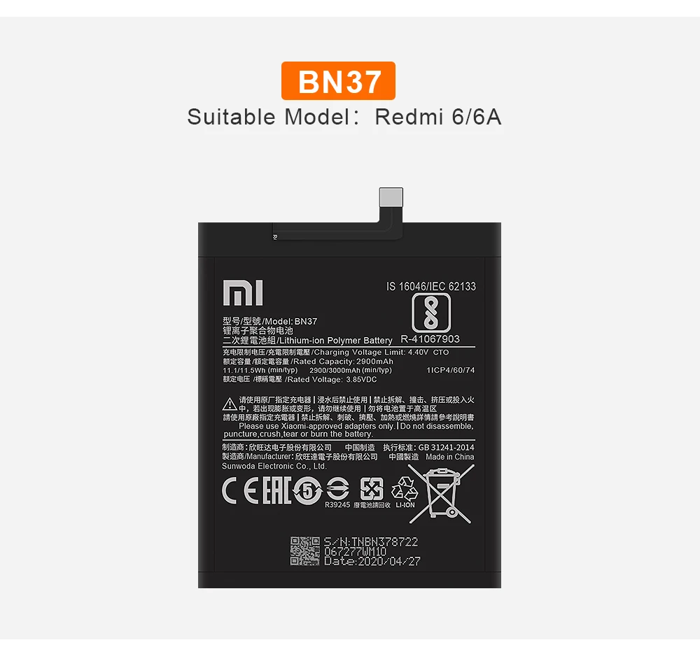 BN41 подходит для Xiaomi Redmi Note 4 и Note 4X на базе процессора Mediatek Helio X20