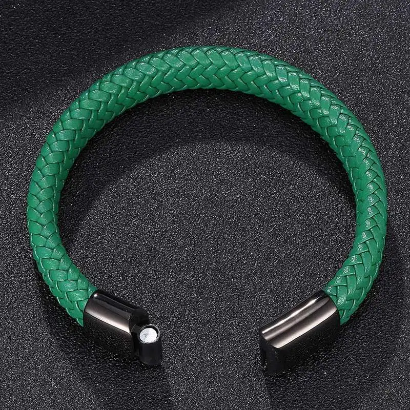 Модные мужские ювелирные изделия, зеленые кожаные браслеты с веревкой, мужской браслет на запястье из нержавеющей стали с магнитной застежкой, панк браслет, подарки