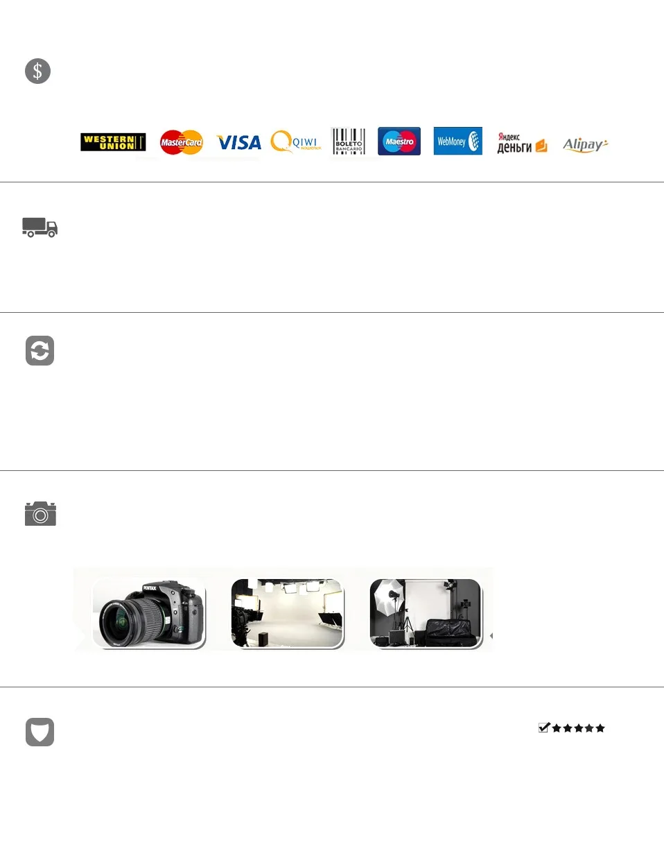 Если у вас есть какие-либо проблемы с нашими товарами или услугами, пожалуйста, свяжитесь с нами, прежде чем оставить отрицательный отзыв. Мы сделаем