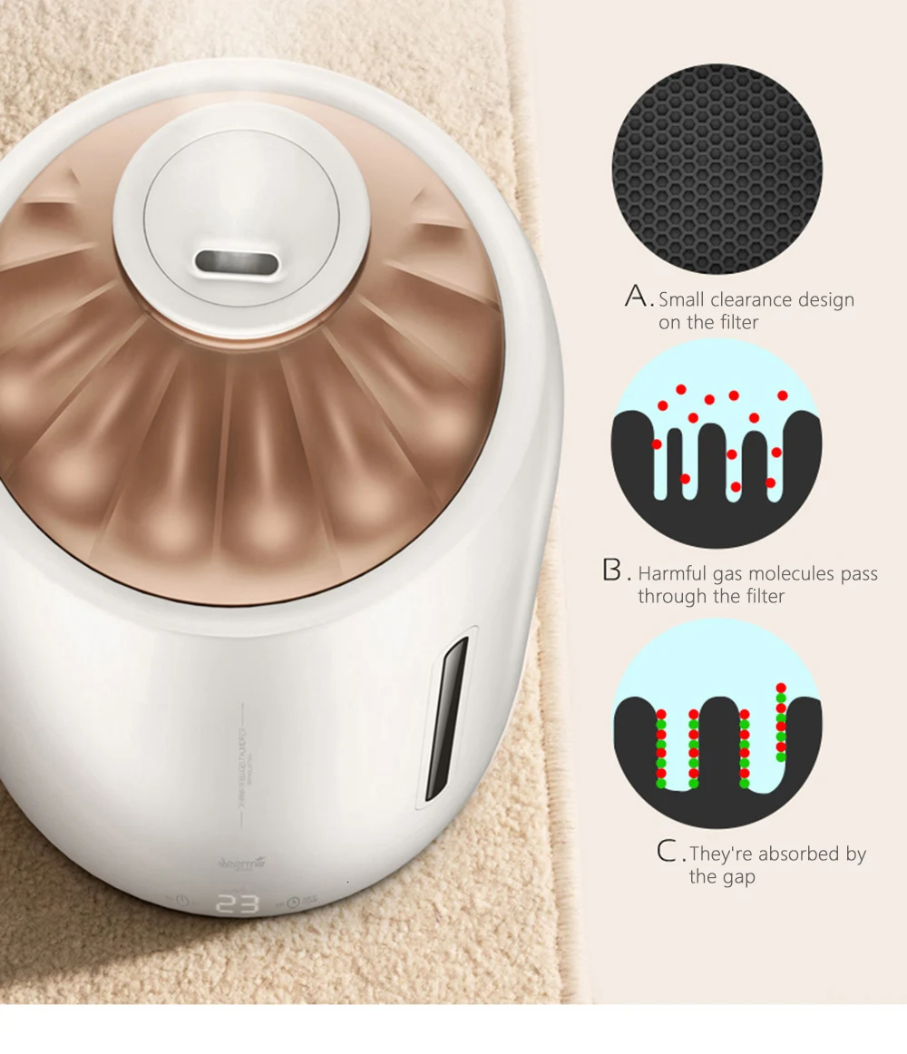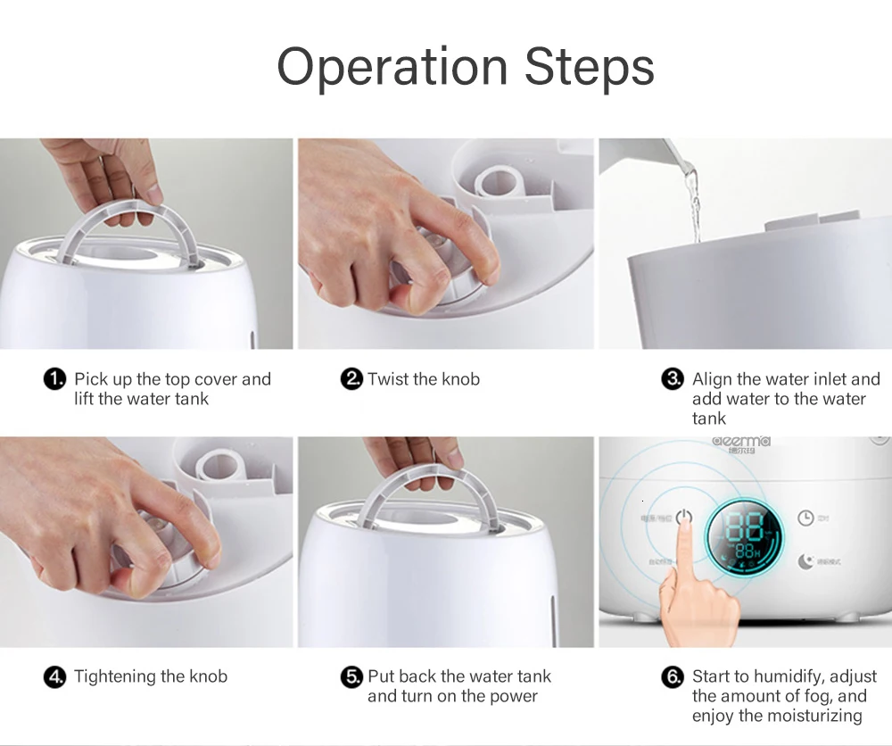 -Добавьте ароматерапию, ароматную: Добавьте разные эфирные масла (в комплект не входят), сопровождаясь мелким туманом, дайте воздуху наполниться ароматом