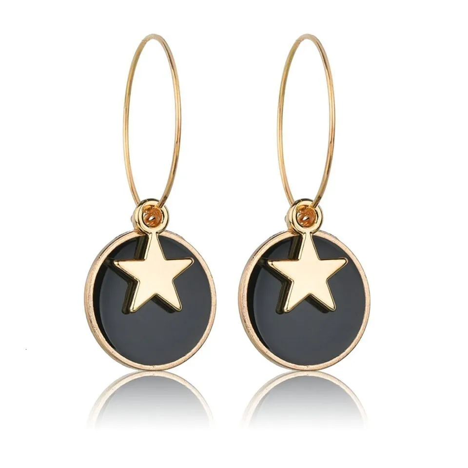 Новые модные серьги-капельки для женщин Золотая звезда в черном круглой конструкции серьги трендовые серьги ручной работы свадебные ювелирные изделия