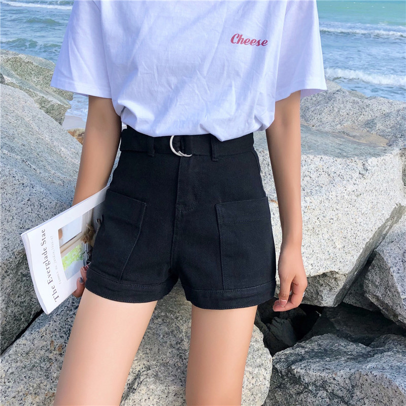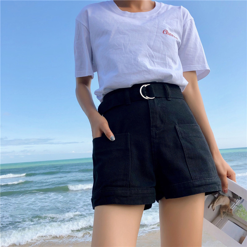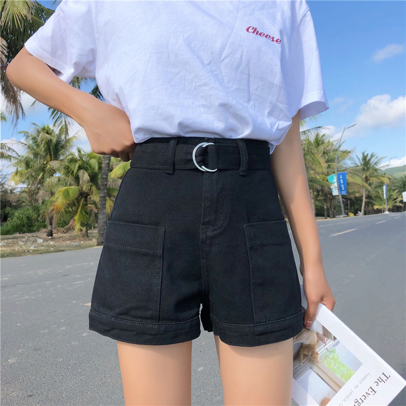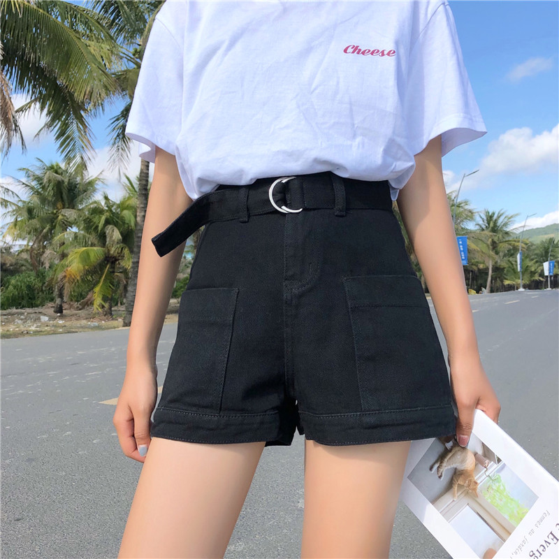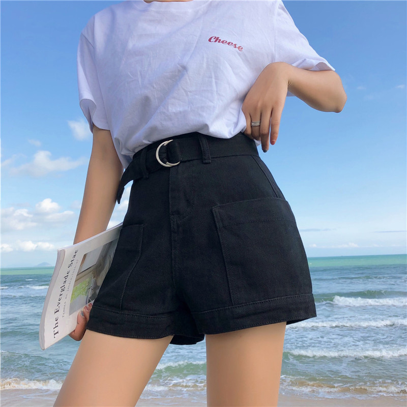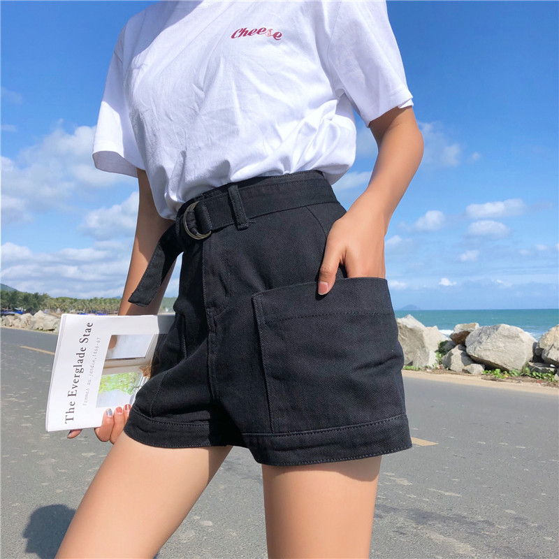 S-XL, 3 цвета, 2019, летние шорты с высокой талией в Корейском стиле, женские джинсовые шорты черного цвета, женские повседневные шорты трапециевидной формы