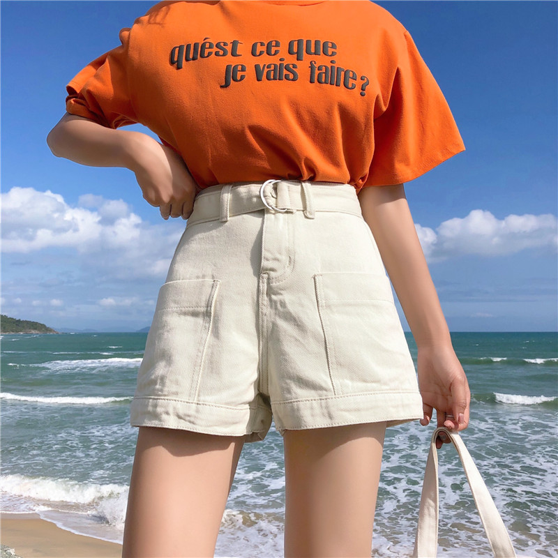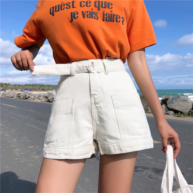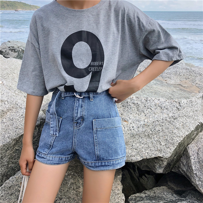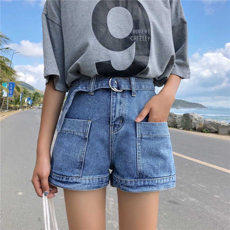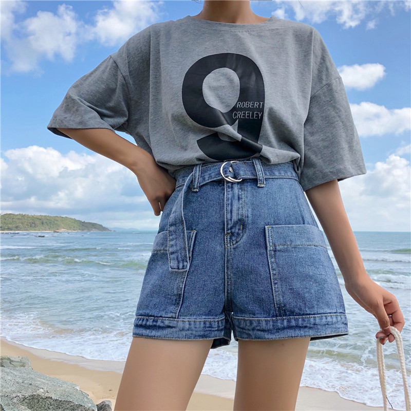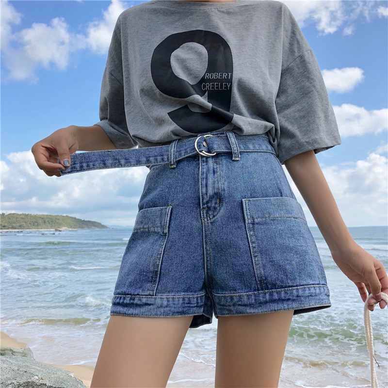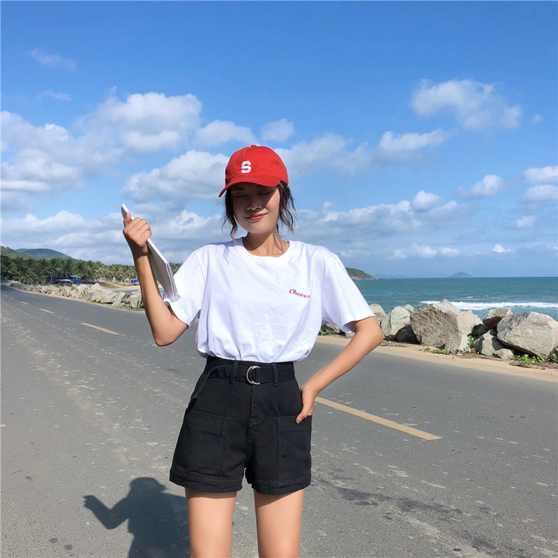 S-XL, 3 цвета, 2019, летние шорты с высокой талией в Корейском стиле, женские джинсовые шорты черного цвета, женские повседневные шорты трапециевидной формы