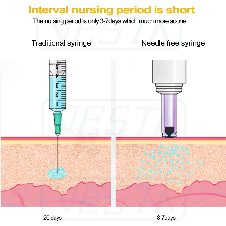 Быстрая инъекция менее 1/3 секунды, микро отверстие и автоматическое пружинное давление делают инъекции с «серой» практически безболезненными
