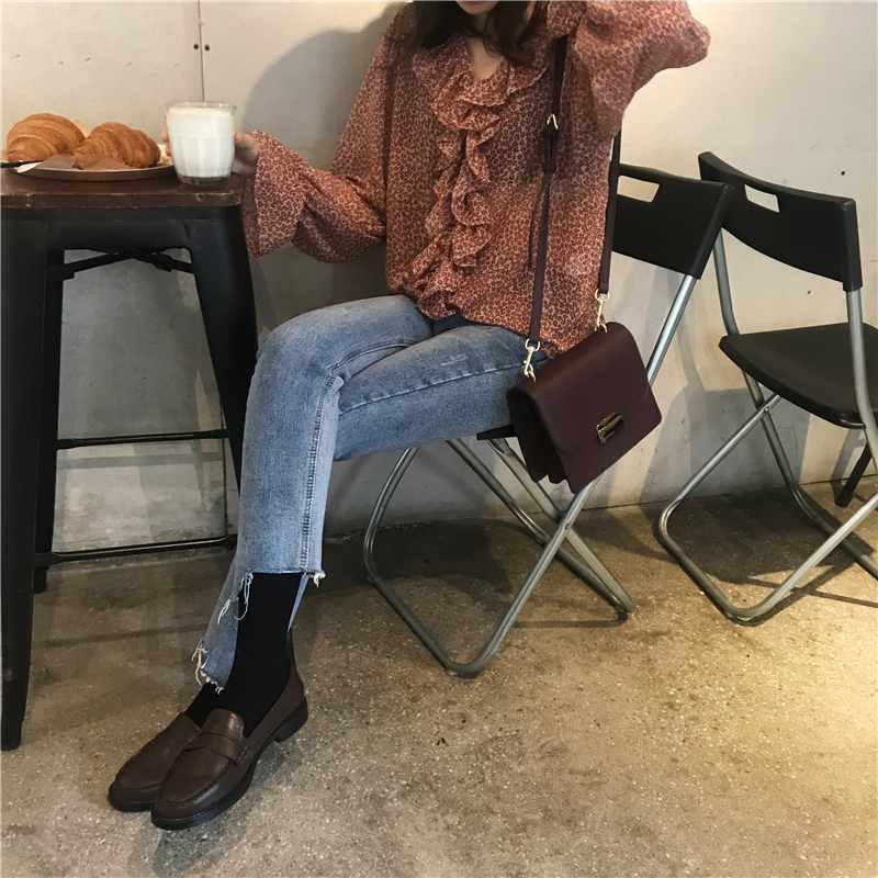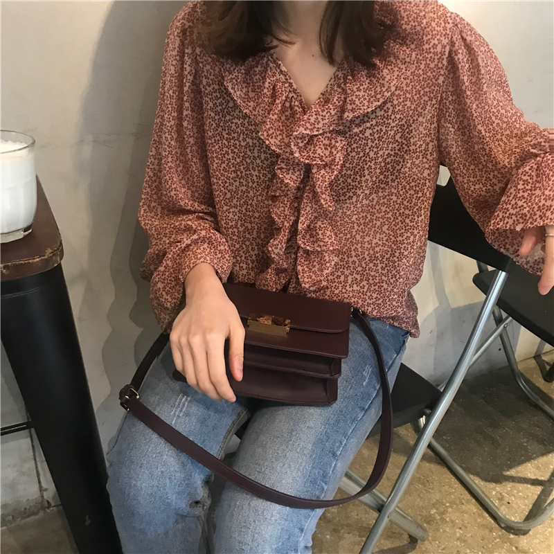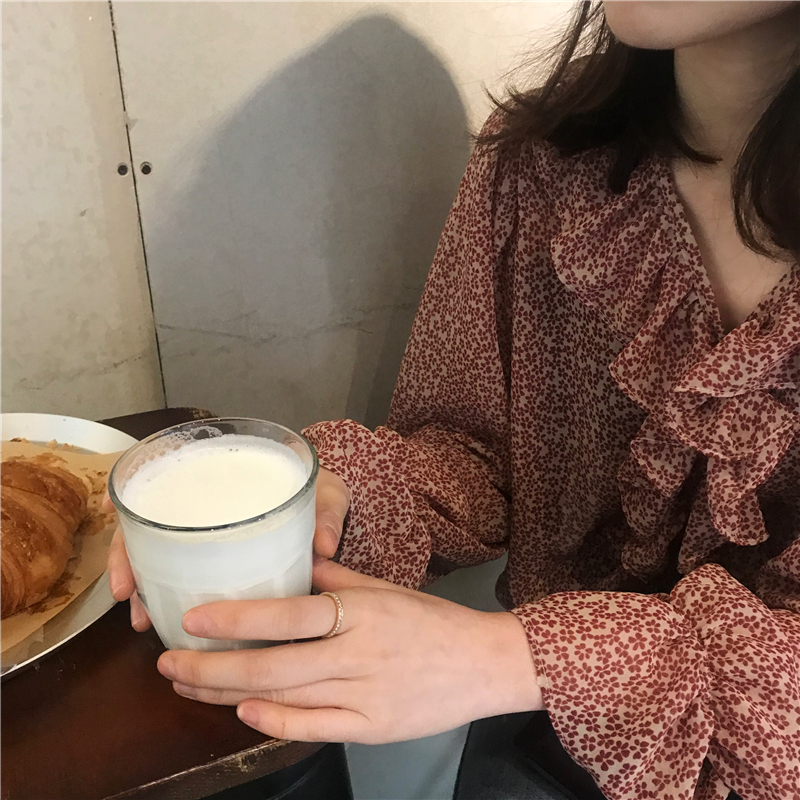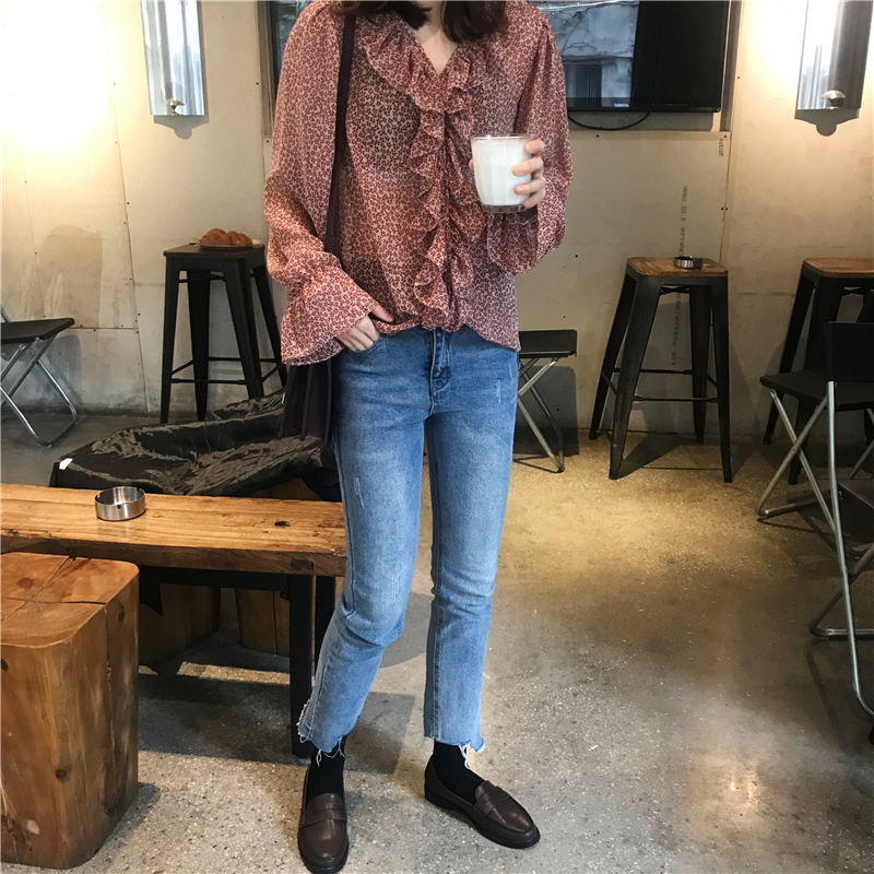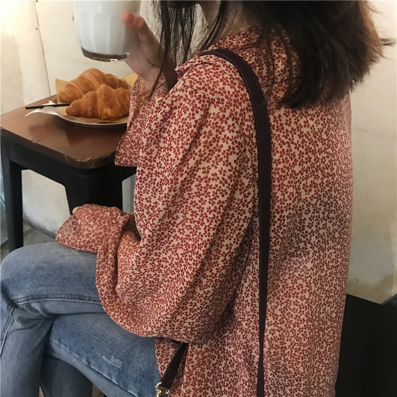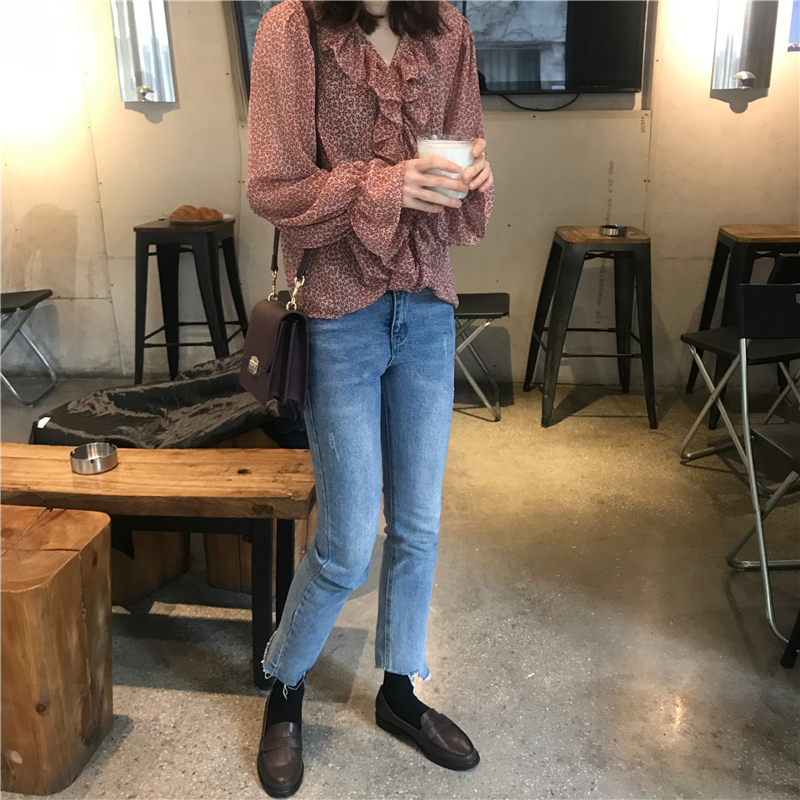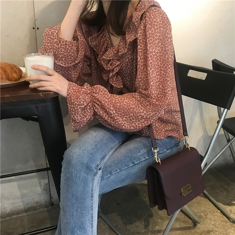 2019 весенние и осенние Милые шифоновые рубашки женские блузки с длинным рукавом и v-образным вырезом женские
