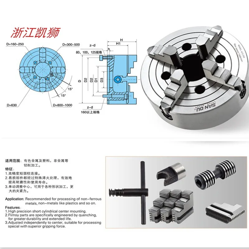 Четырехкулачковый синхронный механизм для зажима четырех квадратных, квадратных частей, также применяется к валу, дисковым частям.