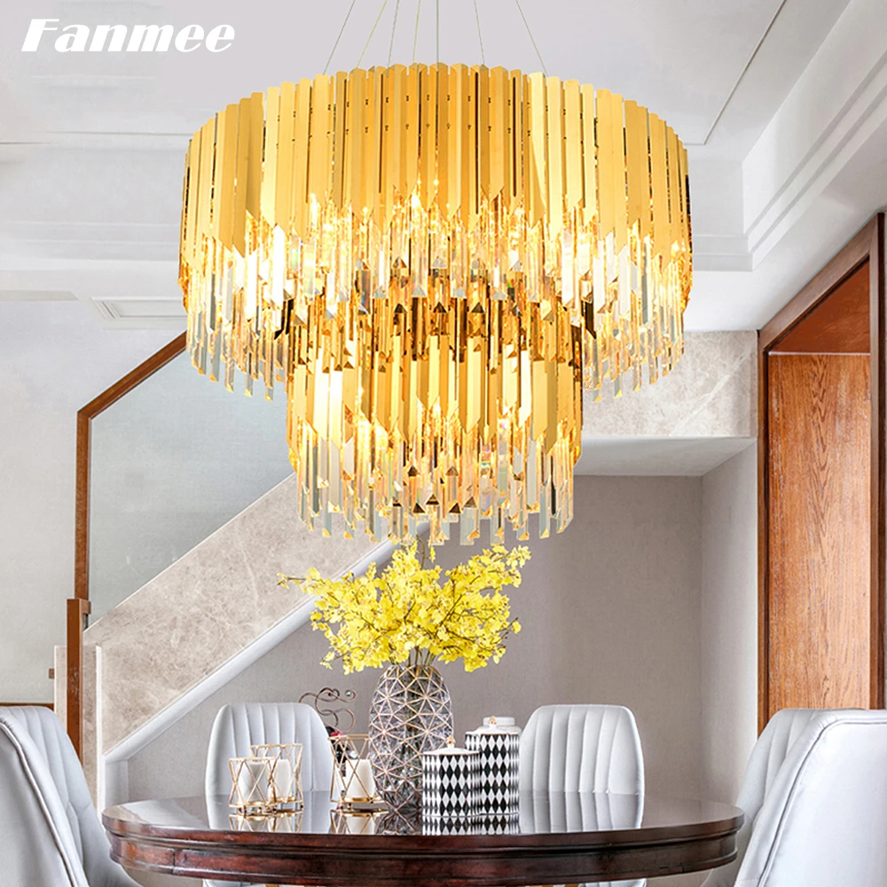 Постмодерн роскошная хрустальная люстра светильник светодиодный Золотой каркас гостиная Подвесная лампа Арт Деко Крытый обеденный стол кухня Остров