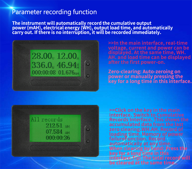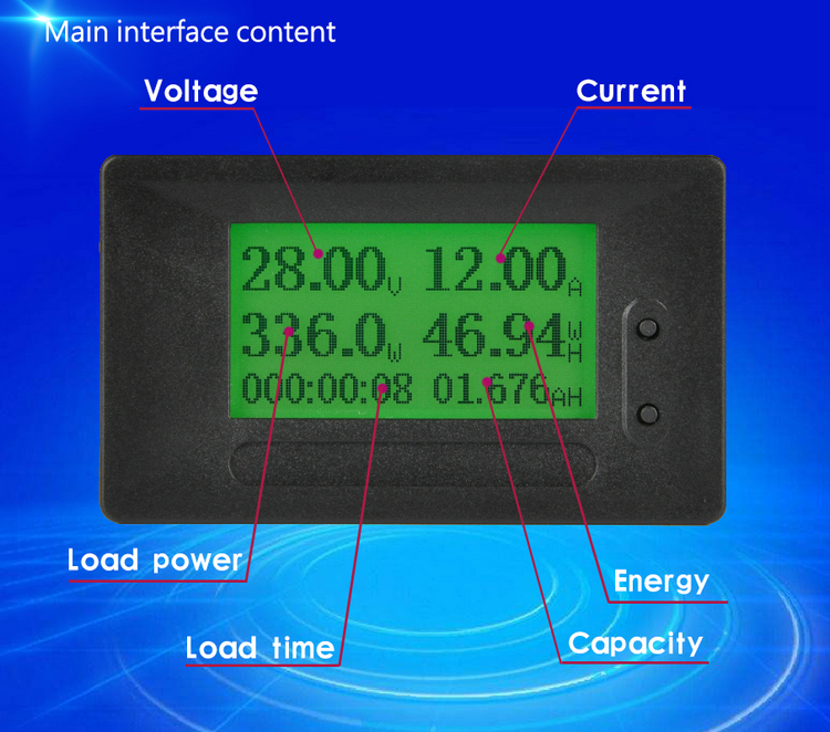 1. Извлеките мощность тока, время нагрузки и ватт-час к оборудованию.