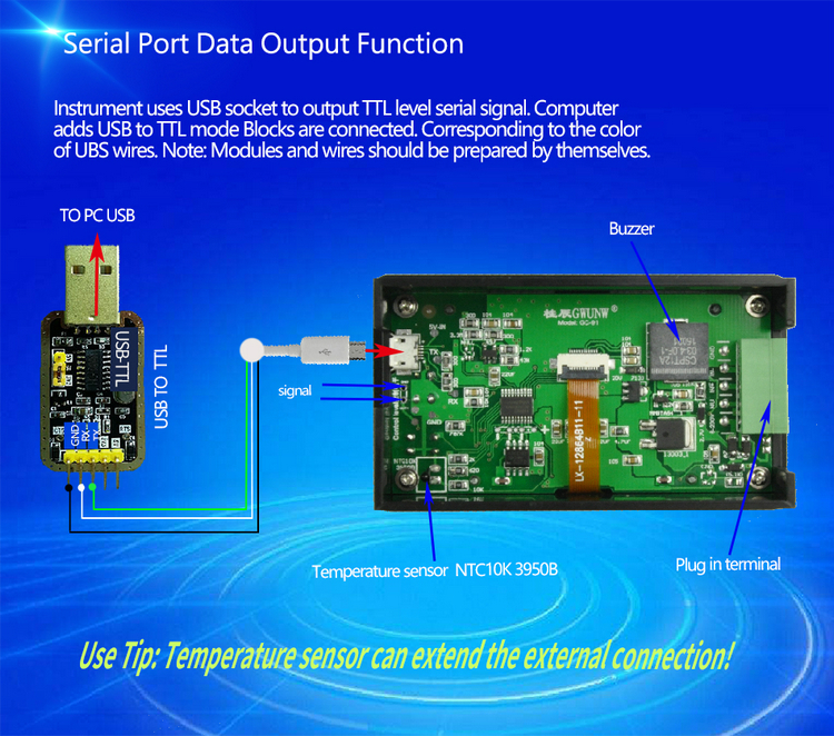 Формат связи прибора-это последовательный порт с TTL уровнем связи. Для того, чтобы использовать метод, интерфейс использует MICRO USB базу. Удобное подключение, пожалуйста, не думайте, что это может быть напрямую