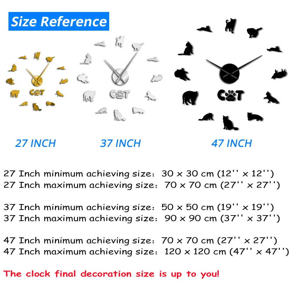 Размер отделки часов основан на ваших предпочтениях, чтобы украсить вашу стену.