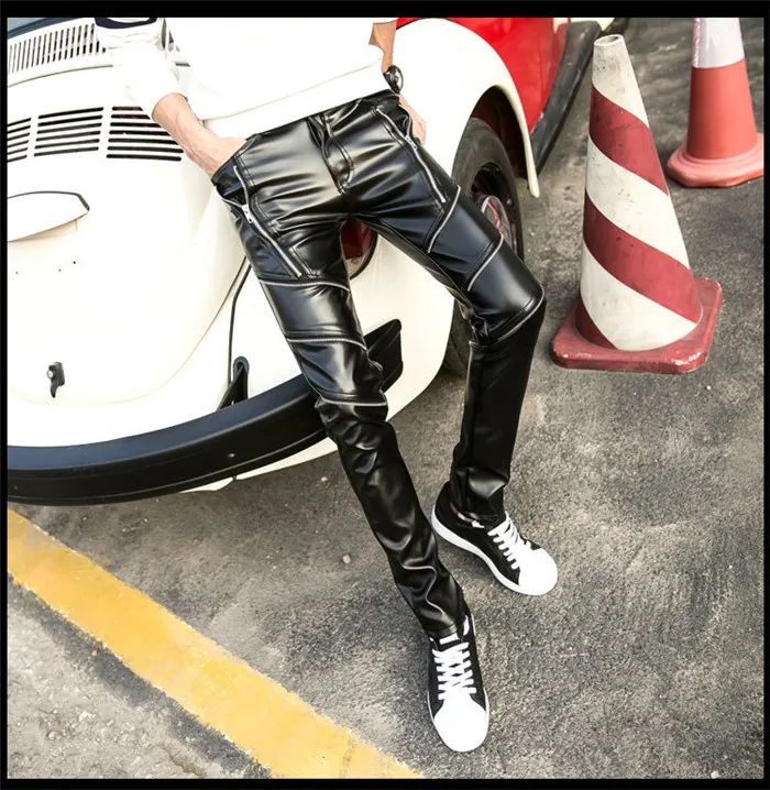 Мужские мото байкерские стильные брюки рваные украшения обтягивающие