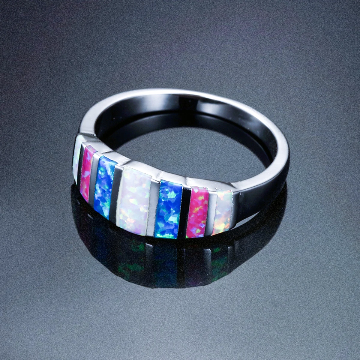 Мода 925 Серебро Многоцветный опал кольцо женские обручальные кольца Размер 6-10