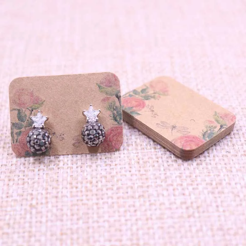 Jewelry package card name | 100Pcs 2.5x3.5cm new arrival Kraft Paper Earring Cards Hang Tag Jewelry Display Ear Stud Cards colorful print earring tag card |