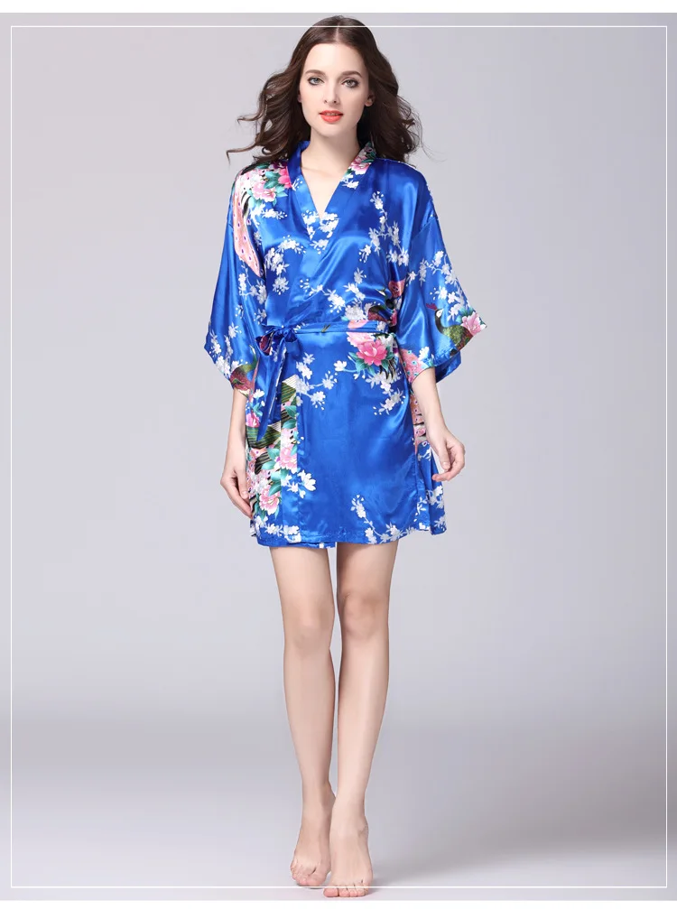 Халат женский атласный Шелковый с цветочным принтом пикантный банный халат для
