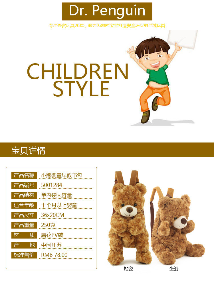 СуперМилая плюшевая игрушка прекрасный мультфильм кудрявый коричневый медведь кукла Мягкий Рюкзак Школьная Сумка подарок на день рождения Рождество 1 шт