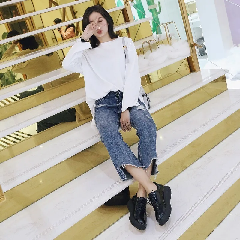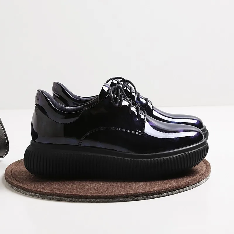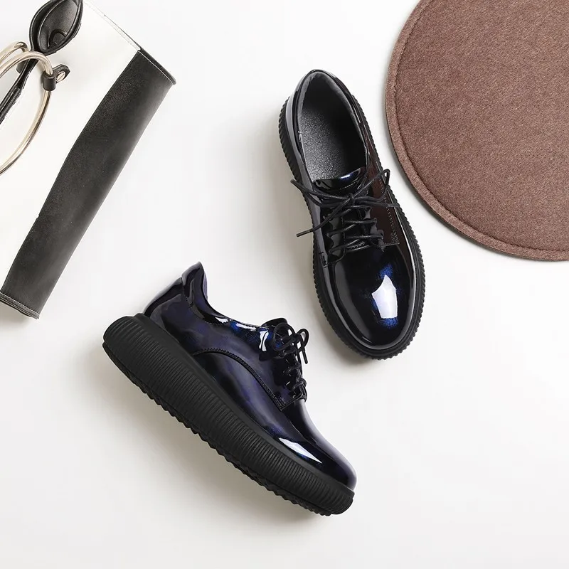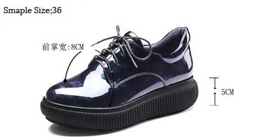 Женская обувь на платформе из лакированной кожи с жемчугом; сезон весна-осень; модная повседневная обувь синего цвета с круглым носком; женская обувь ручной работы; большие размеры 34-42; E013