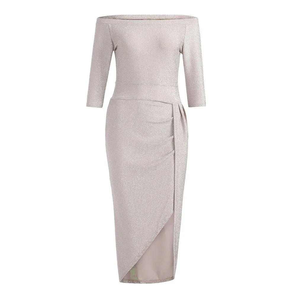 Женское облегающее платье с открытыми плечами и высоким разрезом, платья с длинными рукавами