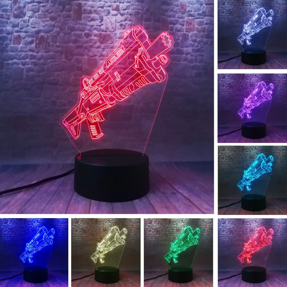 Винтовка Shoting Machine Gun Battle Royale Модель 3D лампа Arylic RGB сменный светодиодный Ночной светильник 7 цветов для игровой подруги