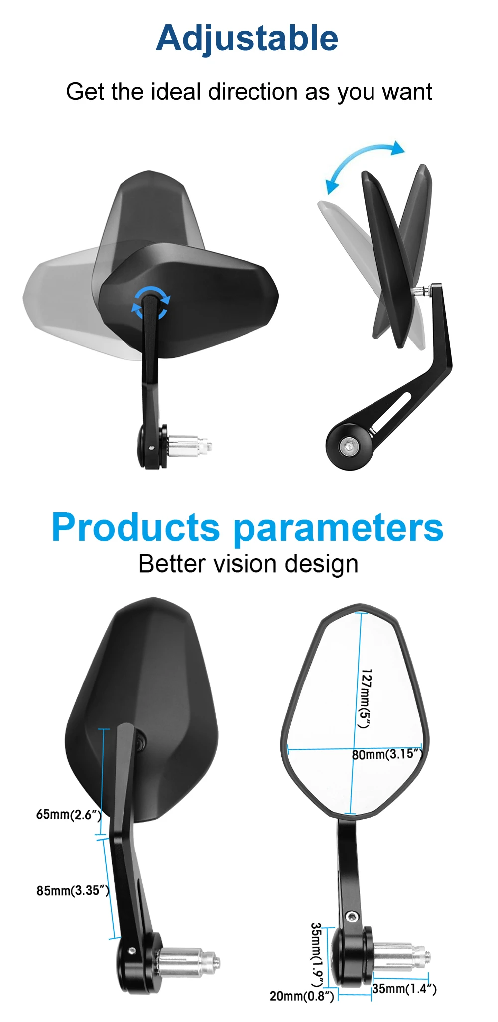 1. Абсолютно новые высококачественные торцевые зеркала с розничной коробкой