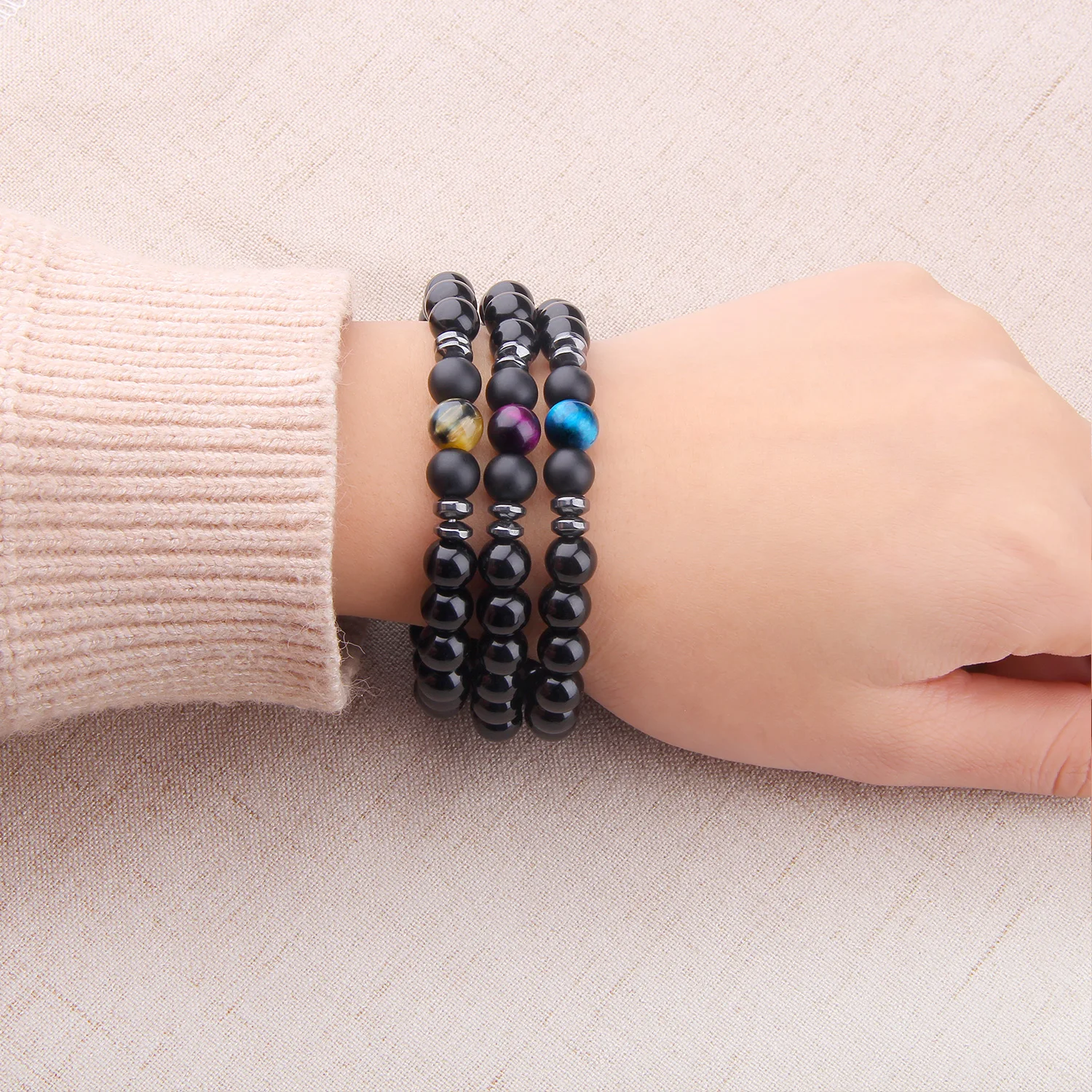 Размер бусин: 8 мм Размер браслета: 16 см 19 см 21 см 23 см Материал: тигровый глаз/матовый Onxy/черный гематит Форма: круглые бусины Цвет: черный Размер длины: 19 см Повод: День рождения/подарок/Вечеринка/Йога/Энергетический Браслет Очаровательный браслет для пары