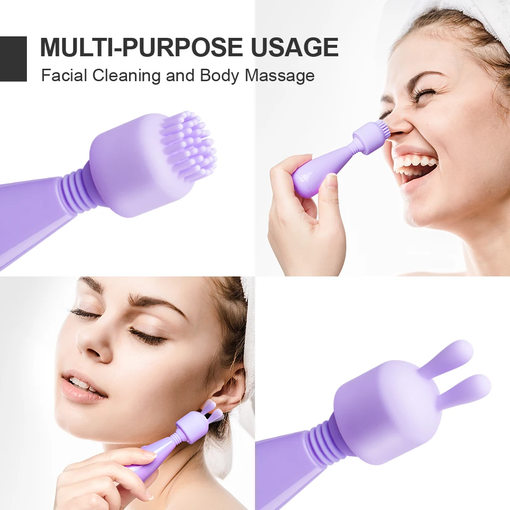 1. 3 скорости массажа, простое управление с одной кнопкой 2. Пара с 2 дополнительными силиконовыми головками, опционально изменить цель и сенсацию, использовать для массажа тела и чистки лица 3. Удобный размер и легкий вес для путешествий 4. Гибкая и мягкая шея, легко достигать области, которые вы хотите 5. Usb-кабель для зарядки и скрытый зарядный порт. 6. IPX6 Водонепроницаемый, мыть его непосредственно под водой.