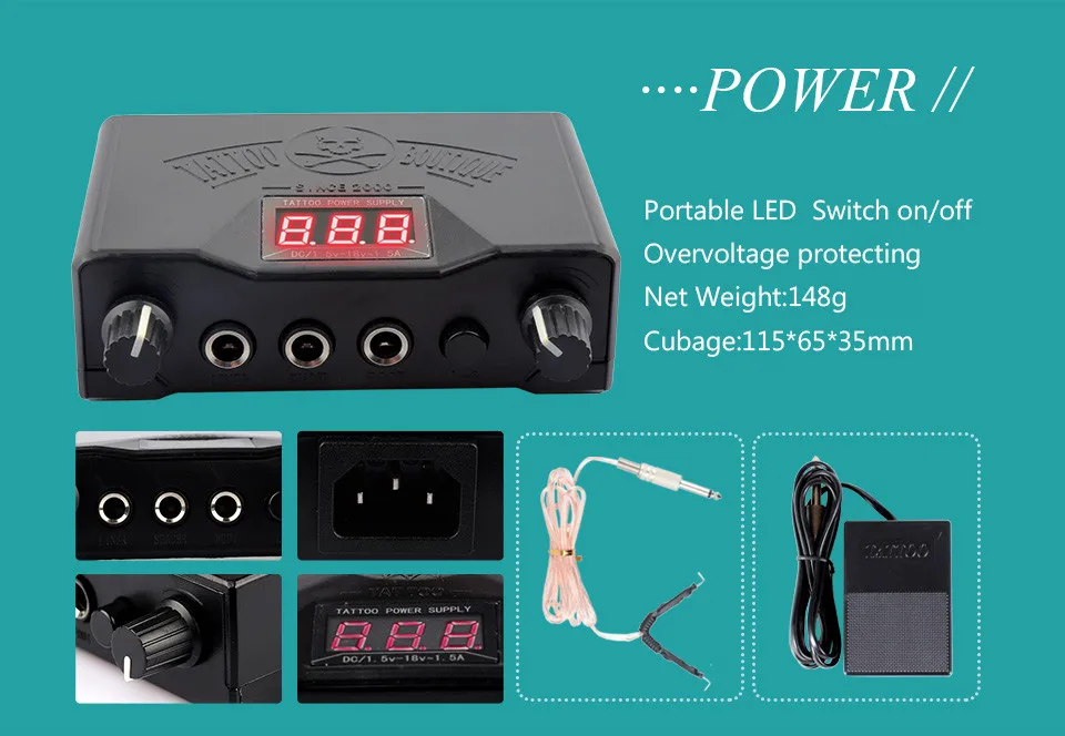 9. Включите питание, Нажмите ножной переключатель, теперь тату-машинка работает