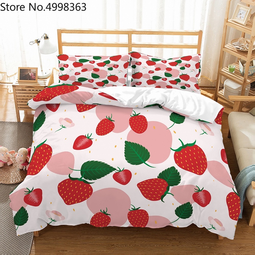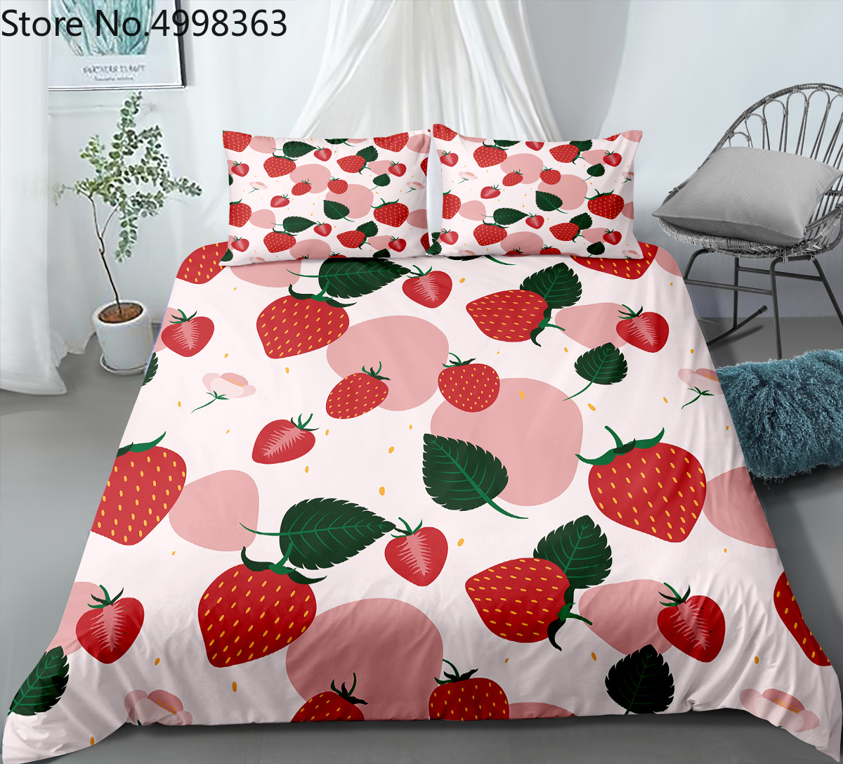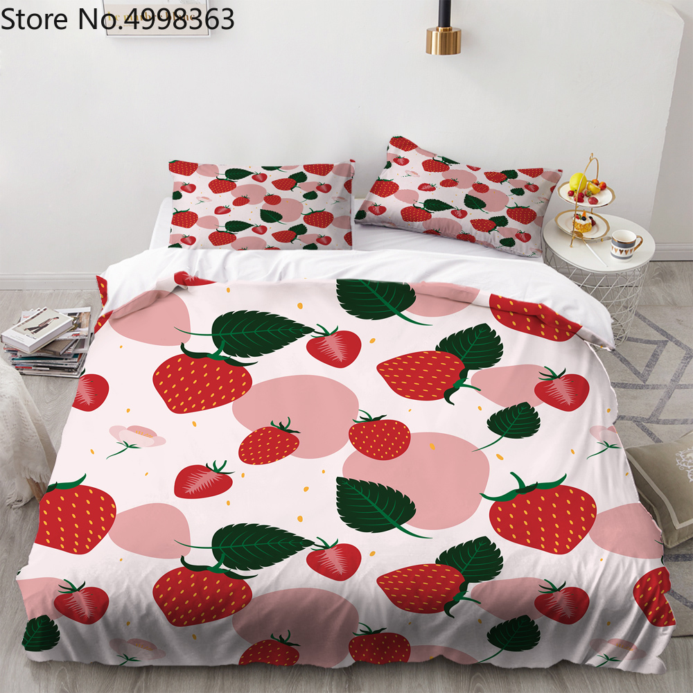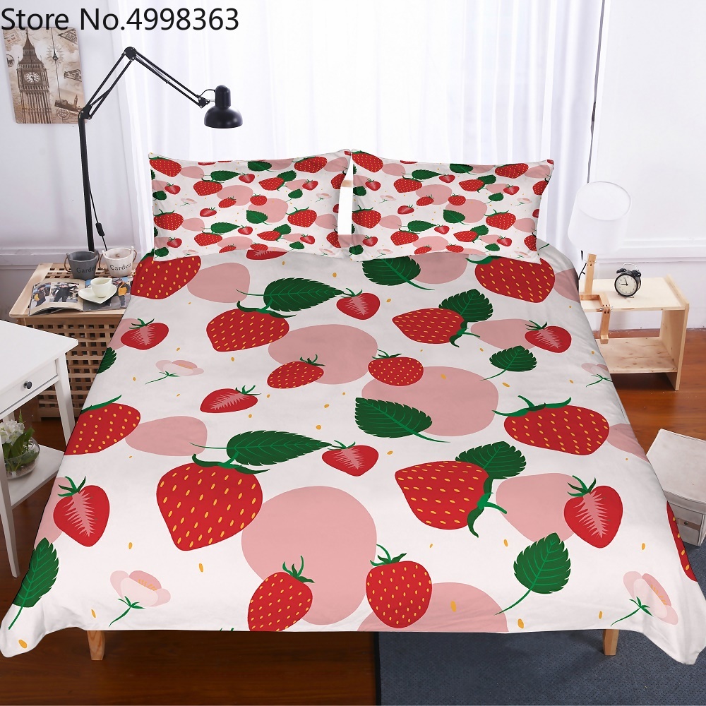 Комплект постельного белья из 2/3 предметов с клубничкой, летний комплект постельного белья с фруктовым розовым и красным пододеяльником, Комплект постельного белья, наволочка для близнецов, постельное белье для королевы и королевы