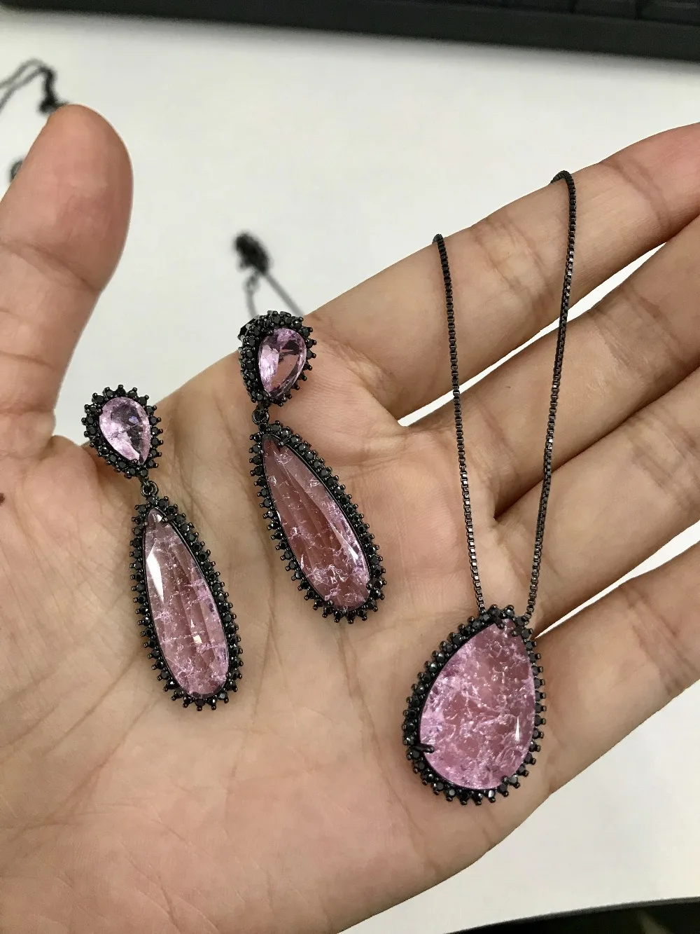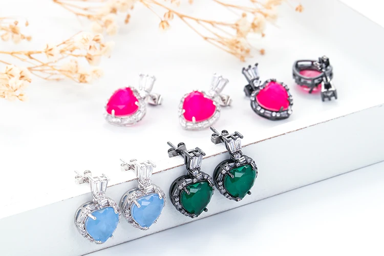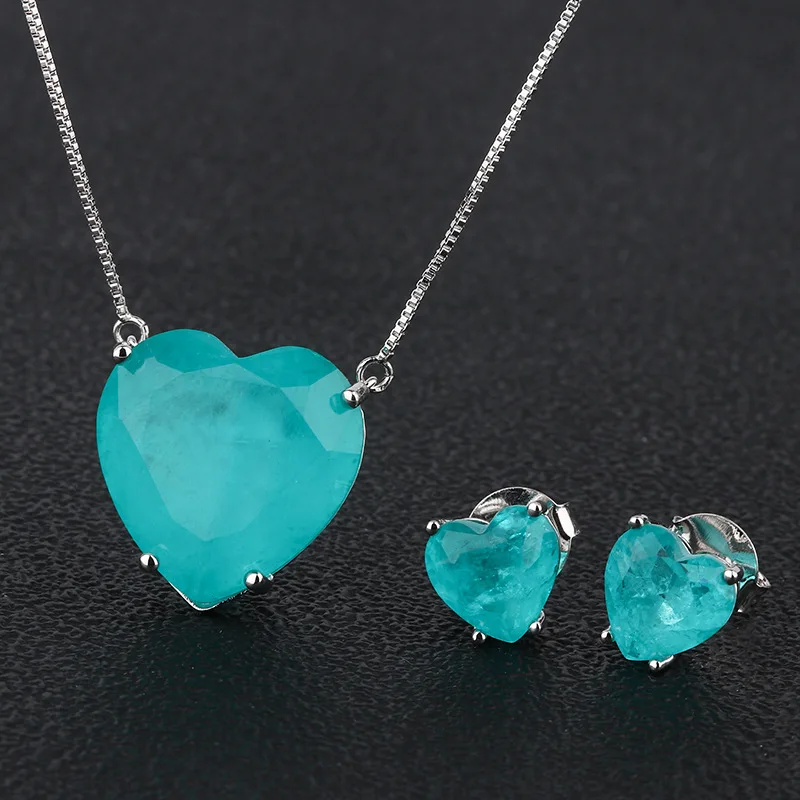 Роскошный зеленый фианит Ювелирный Набор Серебро 925 штамп для женщин кулон