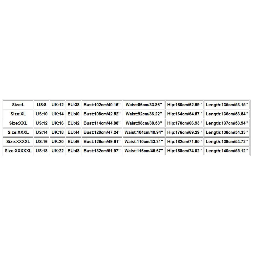 | Size:XXXXL | US:16 | UK:20 | EU:46 | Bust:126cm/49.61'' | Waist:110cm/43.31'' | Hip:182cm/71.65'' | Length:139cm/54.72'' |