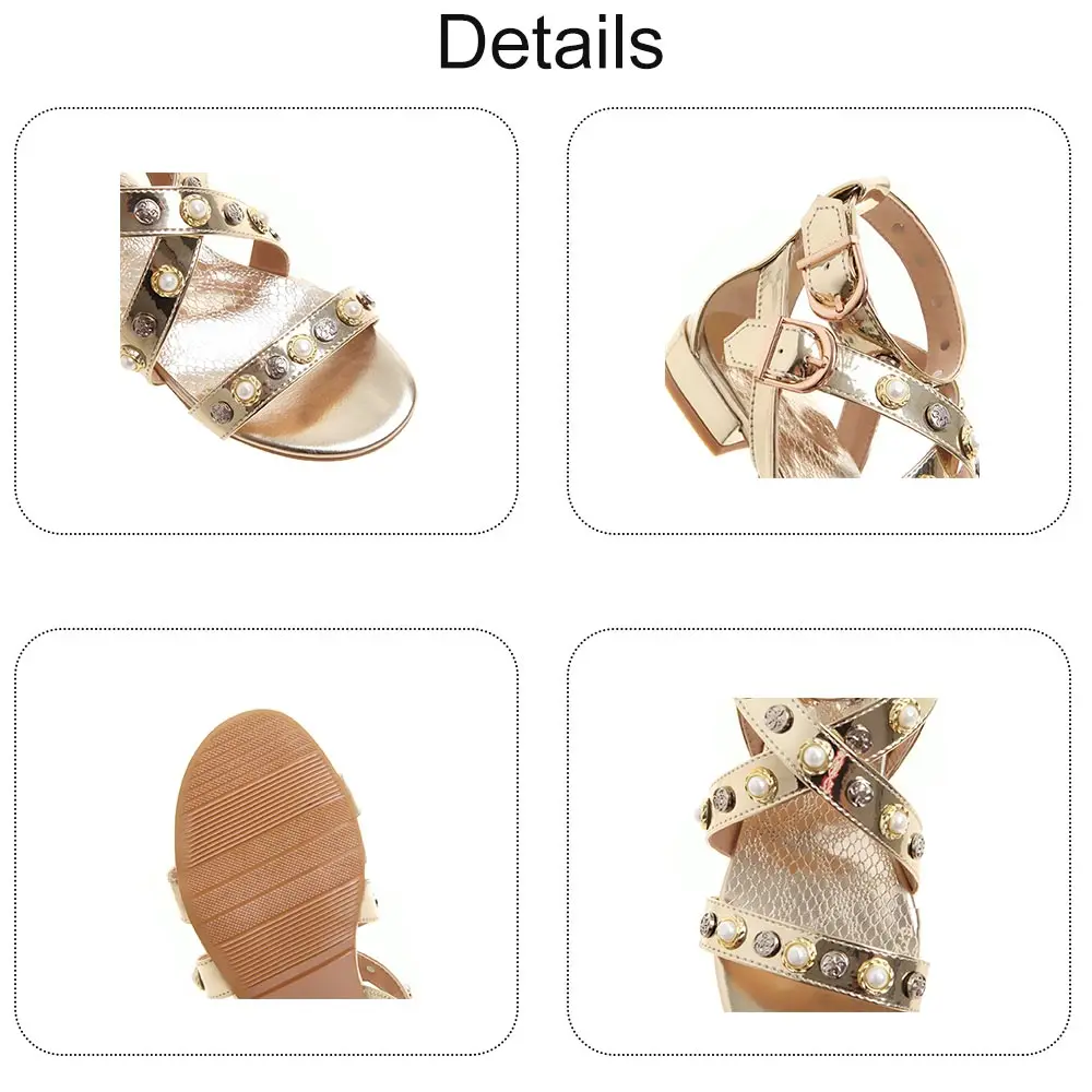 Lloprost ke/женские босоножки; Пикантные летние туфли с заклепками и золотым и серебряным жемчугом; Женские пляжные сандалии на плоской подошве; Роскошные сандалии-гладиаторы; H325